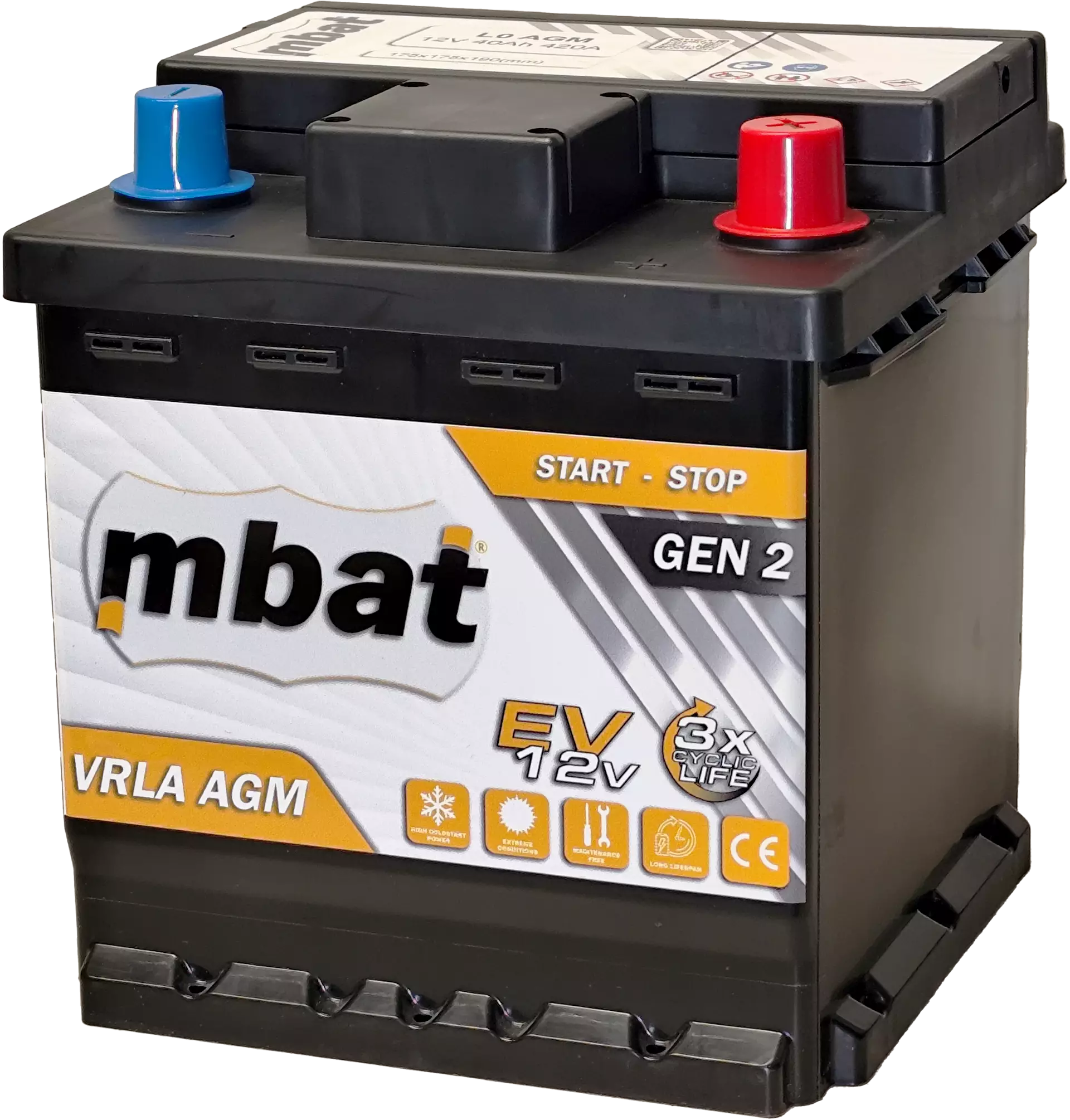 AGM Start-Stop 40Ah/420A 175x175x190/B13/-+