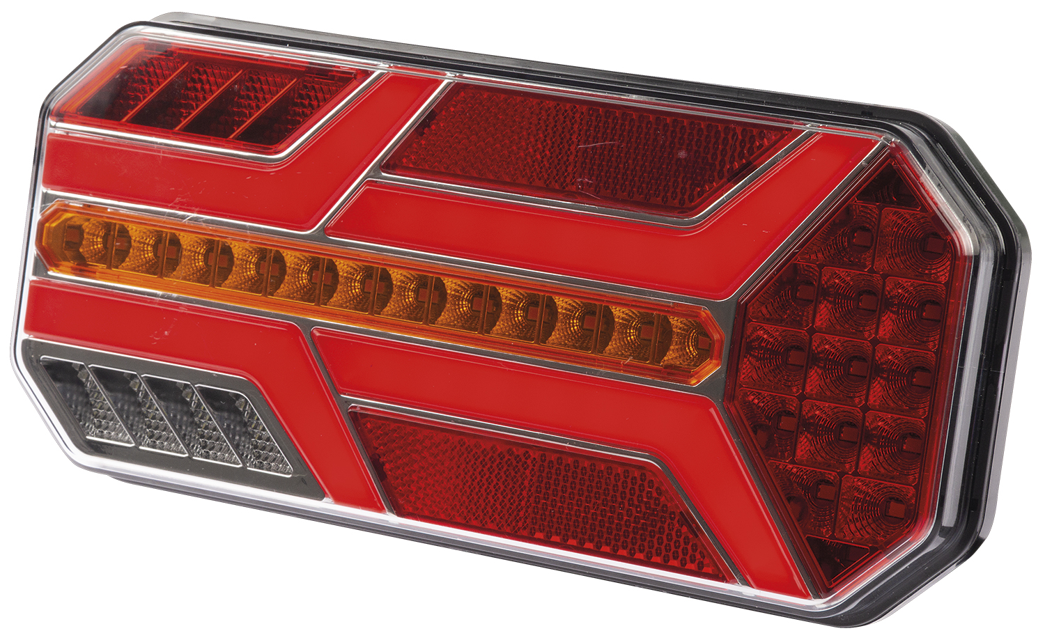 Oikea, jarru/parkki/sumu/peruutus/rekisterikilvenvalo/dynaaminen vilkku, ledit syttyvät viiveellä saaden aikaan kääntymissuuntaan liikkuvan valon, IP67, -40 - +65C. ruuviväli 150mm, johto 250mm