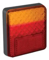 vilkku-, jarru-, takavalo + heijastin ECE & EMC hyväksynnät, IP67, iskunkestävä, Virrankulutus (13.8V: jarru 0.15A, taka 0.07A, vilkku 0.11A /28V: jarru 0.12A taka 0.06A vilkku 0.07A). 400mm kaapeli, kiinnitysväli 70mm