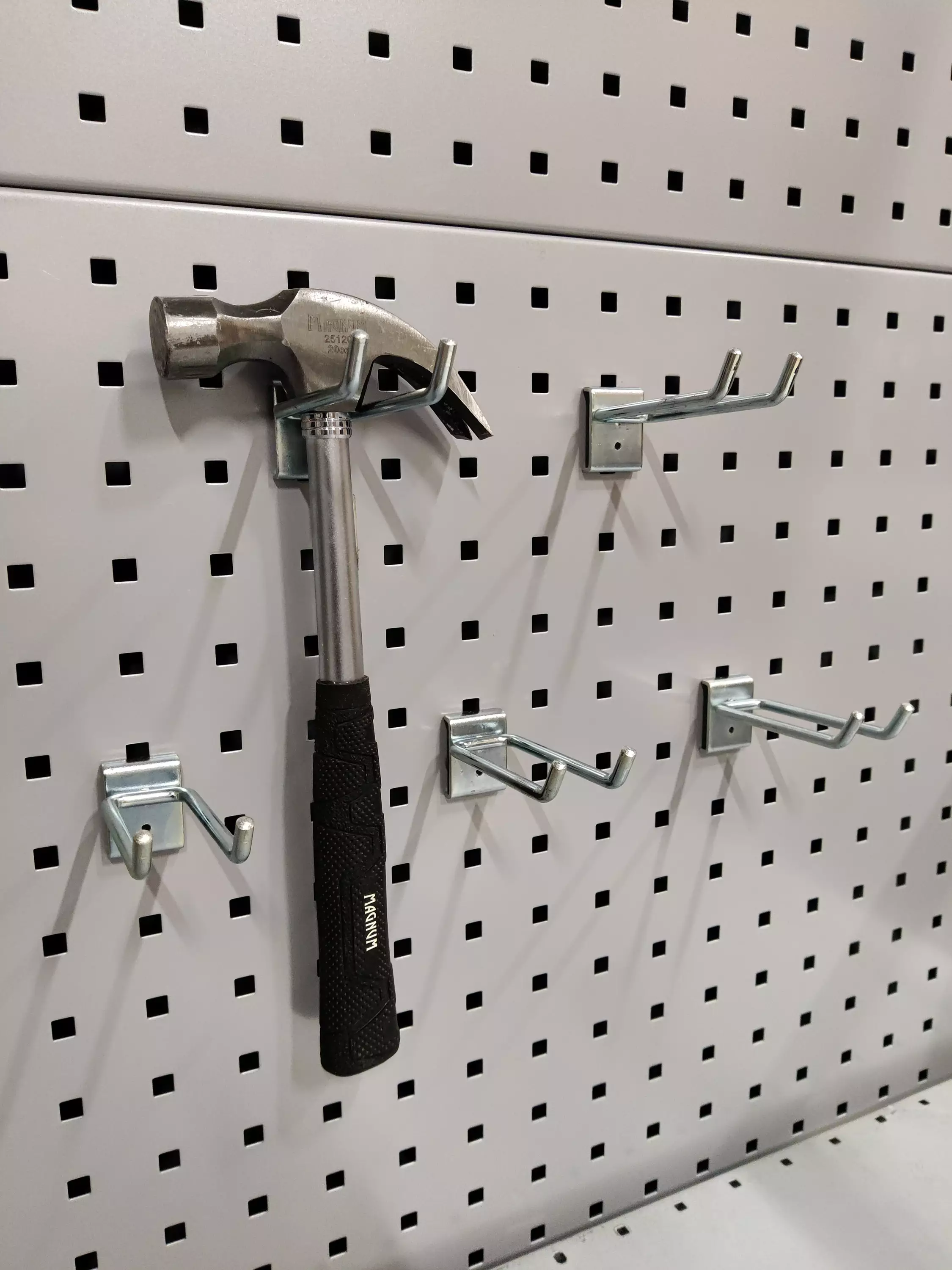 Reikälevypiikki, reikälevypidike, työkalupiikki, työkalupidike, reikälevy, reikäpelti, ripustuskoukku, työkalukoukku, työkalujärjestelmä, työkalutaulu, varastointi, kaksois T-piikki