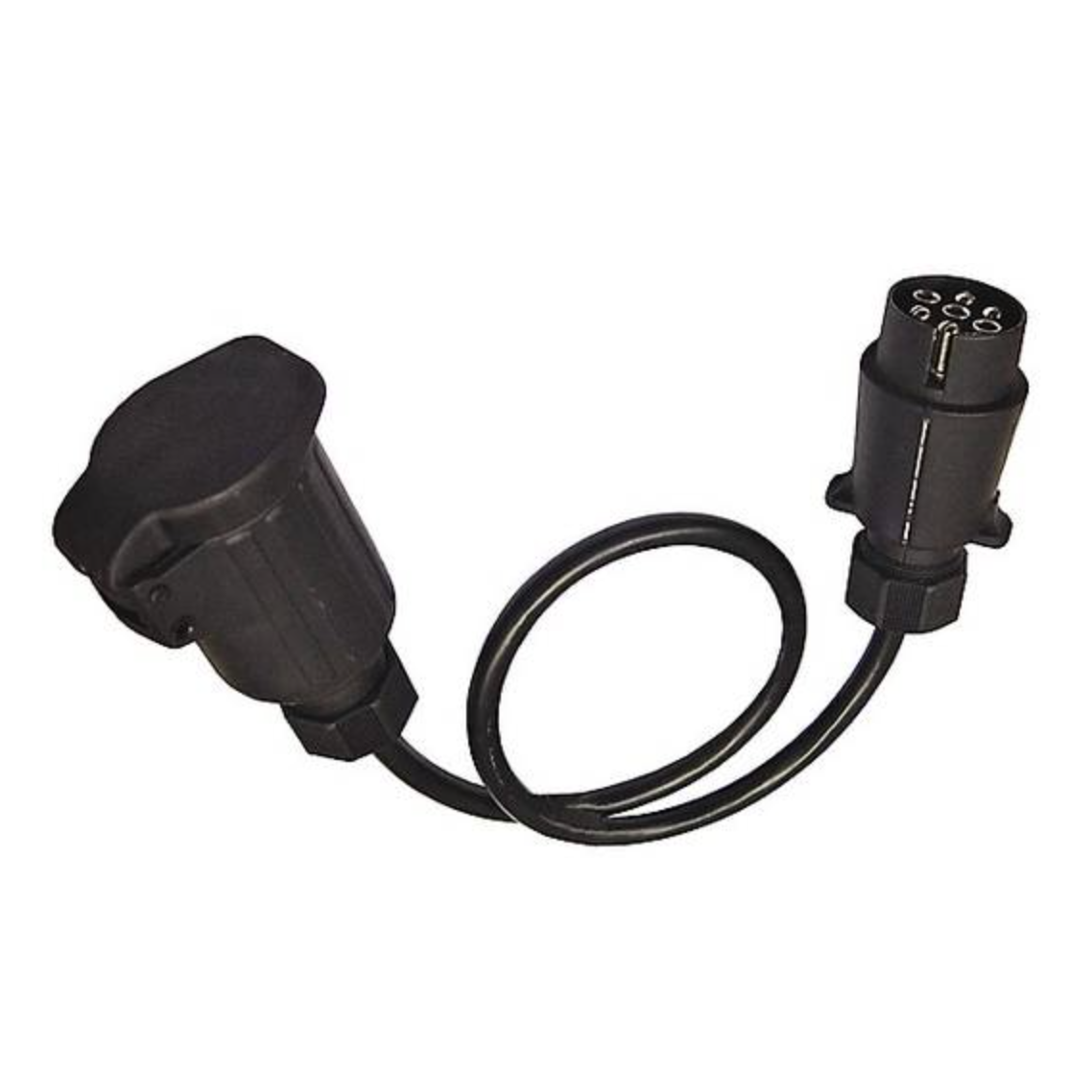 7-napainen jatkojohto. Pituus 0,5m. Suora malli. Uros-Naaras. Peräkärryn jatkojohto, perävaunun jatkojohto