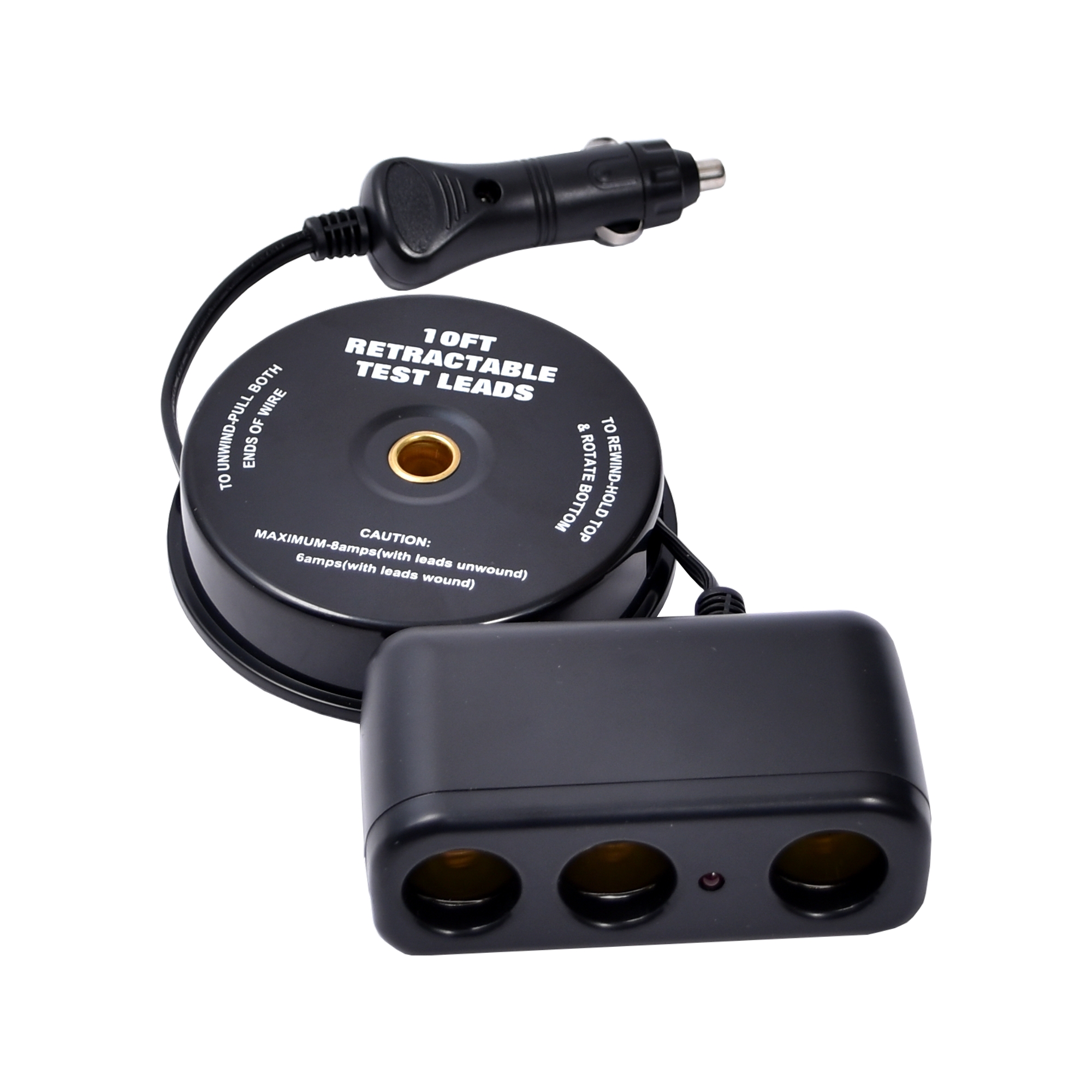12V DC jatkojohtokela kylmälaukuille ym. akuilla toimiville laitteille. Kätevä kelata jatkojohto kiepille, ei enää sotkuisia johtoja. - Pituus 3m - 3-osainen pistorasi