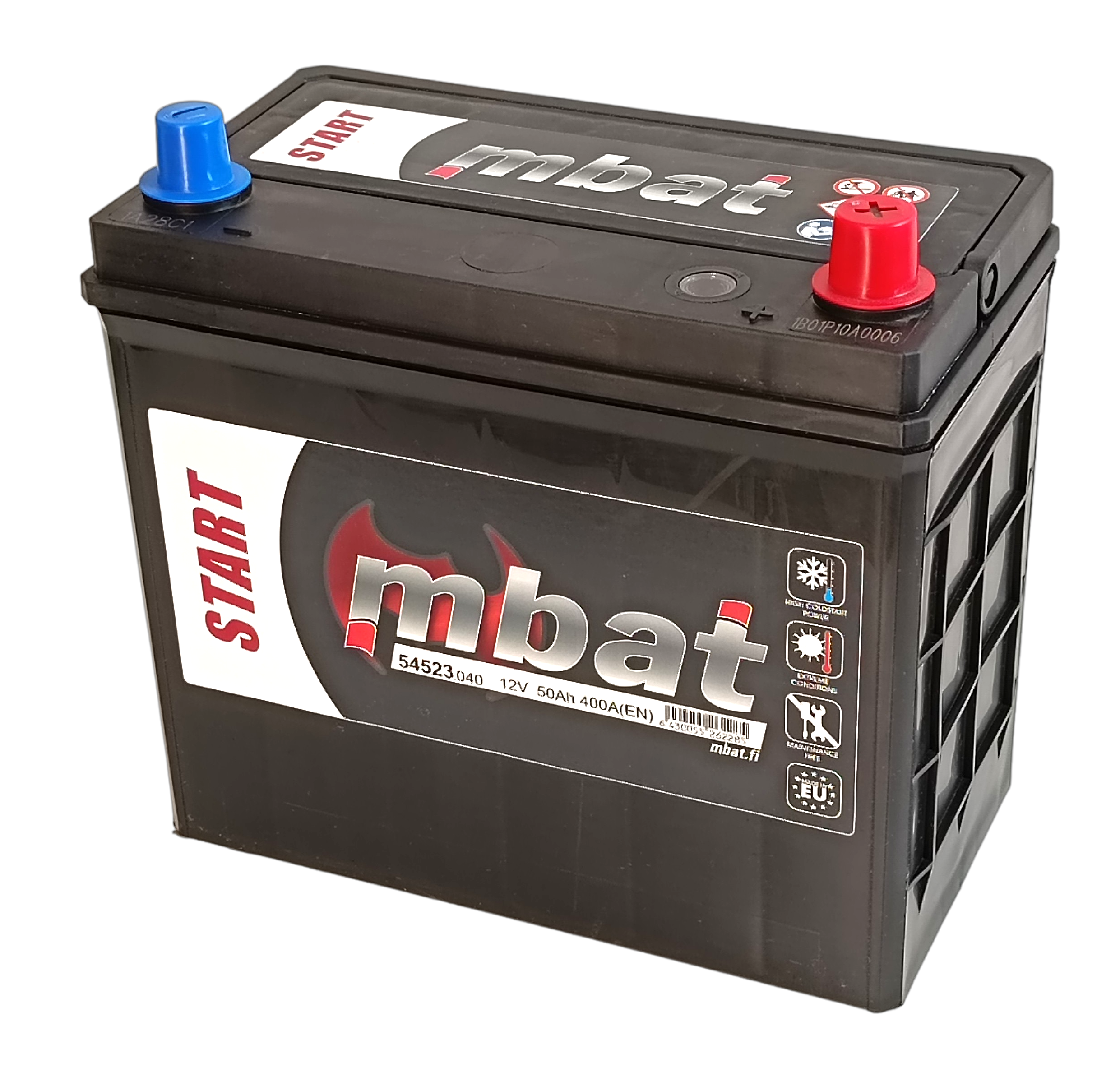 MBAT käynnistysakku KIA, Hyundai, Toyota, Nissan, Mazda, Suzuki ym.. Varmatoiminen MBAT auton starttiakku alkuperäistä vastaavilla ominaisuuksilla. Suosittu auton akku laitteisiin joissa keskitaso/tai normaalia korkeampi virrankulutus. Lataustilan ilmaisin. Korkea käynnistysteho. Uusin Con-Cast valmistustekniikka. Täysin huoltovapaa. Luotettava valinta. Autonvalmistajien tiukkojen vaatimusten mukainen. Kia , Hyundai, Nissan Mazda ensiasennusvalmistajalta. Takuu 24kk käynnistysakkuna.