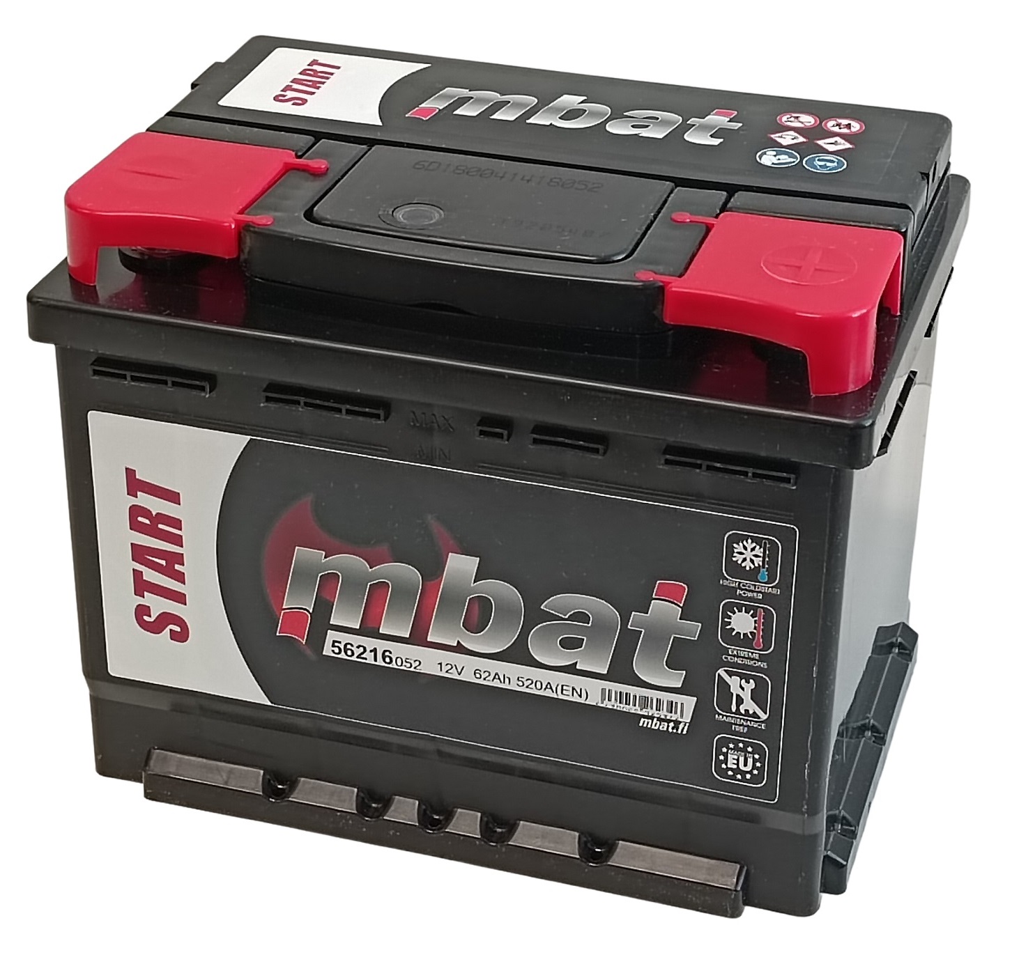 MBAT käynnistysakku.Varmatoimiset käynnistysakut alkuperäistä vastaavilla ominaisuuksilla.