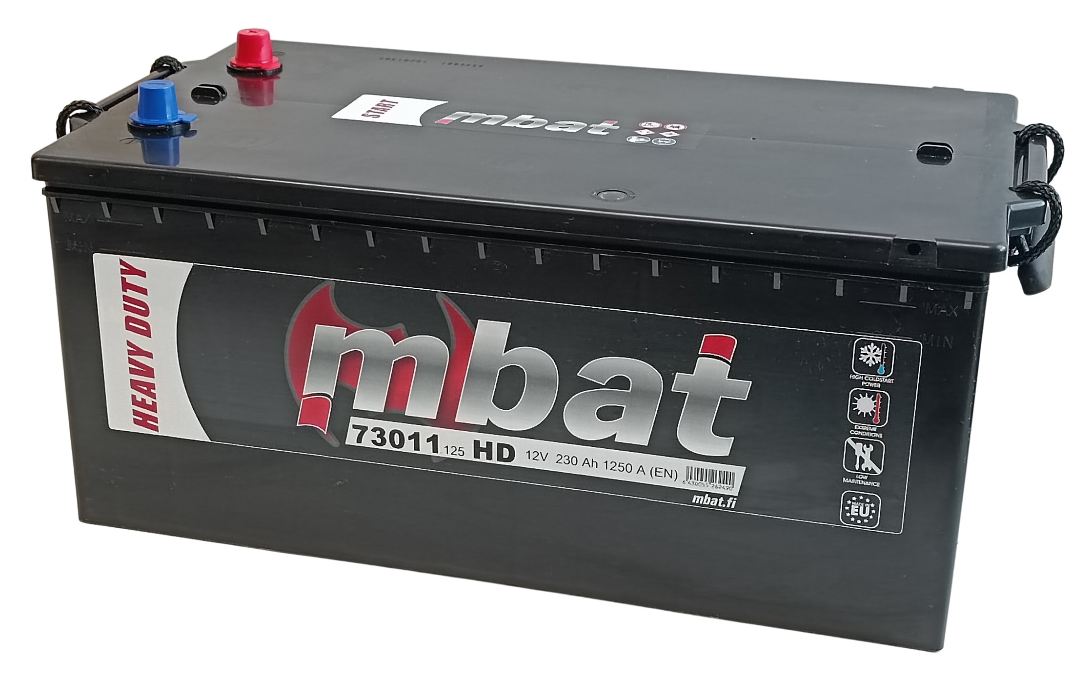 Luotettava MBAT, suljettu Heavy Duty SMF kuorma-autojen , traktorien ja työkoneiden käynnistysakku. Varma valinta laitteisiin joissa ensisijainen tarve hyvä käynnistysteho, pitkä käyttöikä ja huoltovapaus. Täysin huoltovapaa. Lataustason ilmaisin. Vahvistettu HD ristikkorakenne. Täyttää EN normien mukaisen HD akkujen tärinänkestoluokan. Takuu 12kk käynnistysakkuna.
