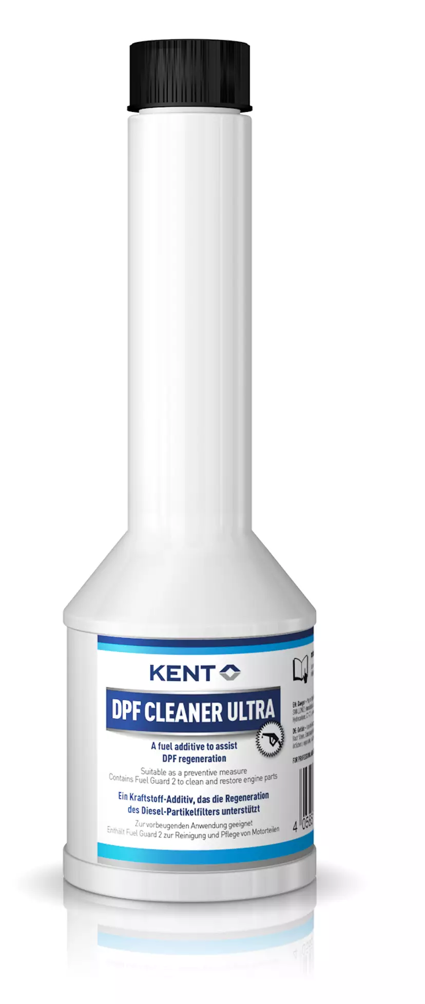 KENT DPF Cleaner Ultra auttaa palauttamaan tukkeutuneen hiukkassuodattimen toiminnan. Lisää 250 ml KENT DPF Cleaner Ultraa 20-25 litraan polttoainetta, ja aja 10-20 km 100 km/h nopeudella. Käytä ajoneuvoa normaalisti kunnes polttoaine on melkein lopussa. Lisää tankatessa 250 ml KENT DPF Cleaner Ultraa. Tankkaa täyteen. Toista ennakoiva käsittely suodattimen tukkeutumisen estämiseksi.