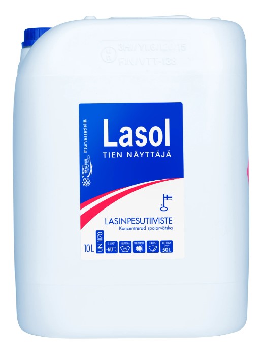 Lasol on riittoisa tiiviste: esim. 2L Lasolista saa 10L lasinpesunestettä, joka kestää -7 asteen pakkasta.