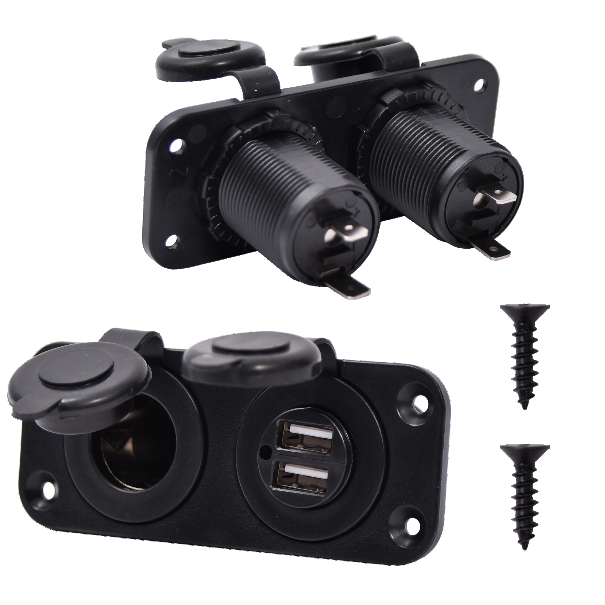 Latausportti uppoasennukseen. - USB 2kpl 3,4A - Tupakansytytinpistokepaikka 1kpl - 12/24V - Uppoasennus - IP44 - Lämpösuoja
