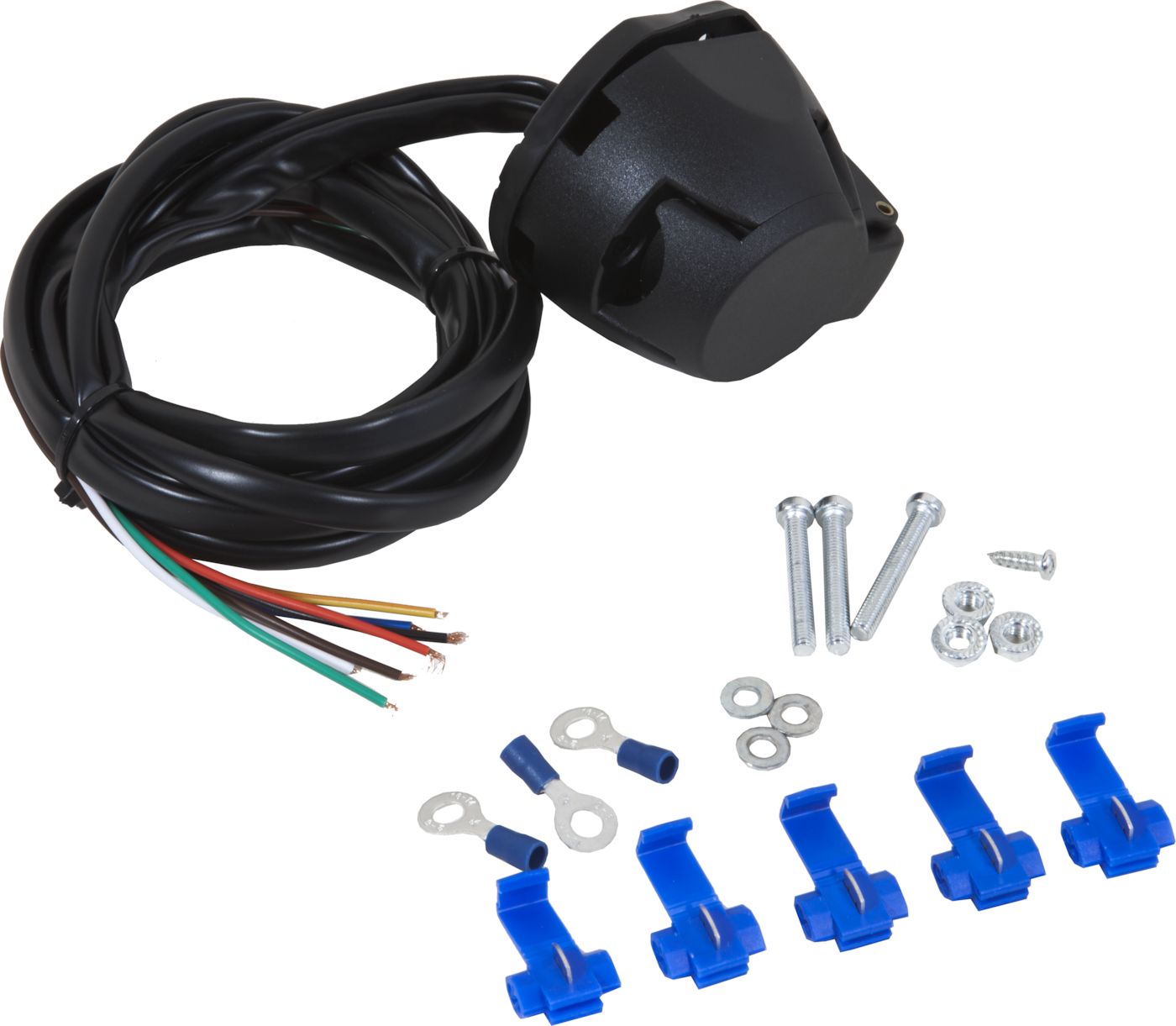7 - napainen muovinen pistorasia/johtosarja perävaunun ja vetoauton välistä valojen sähkökytkentää varten. 1,5m liitosjohto, 3kpl rengasliittimiä, 5kpl rosvoliittimiä, kiinnitysruuvit... Lue lisää