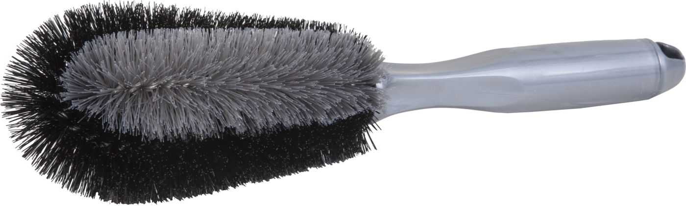 Tukevarakenteinen harja yltää ahtaisiinkin rakoihin. Kevytmetallivanteiden kätevään ja tehokkaaseen puhdistukseen. Pituus 27cm.