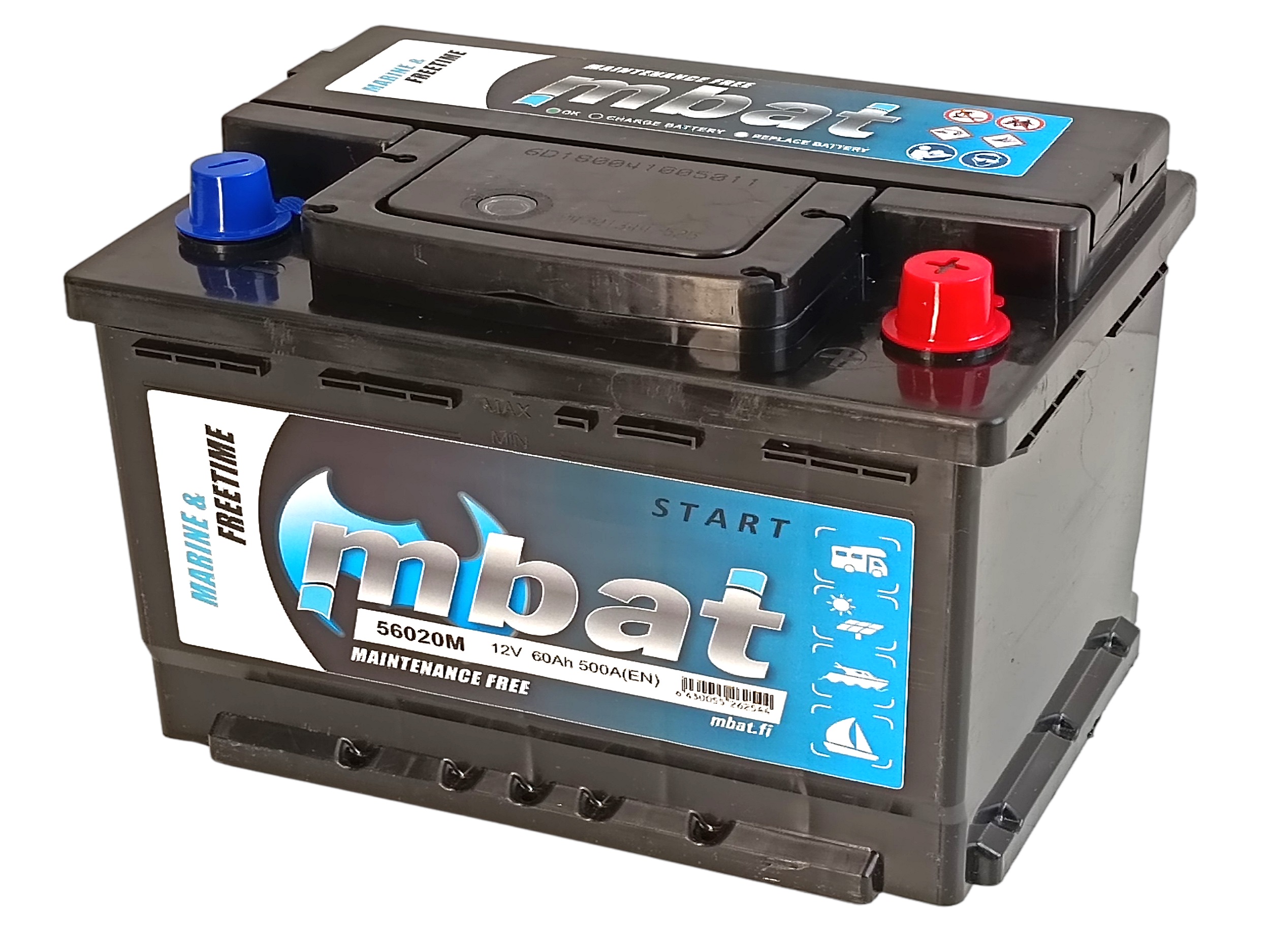 Marinestart -sarjan akut on tarkoitettu erityisesti veneily- ja vapaa-ajan käyttöön. Ne soveltutuvat sekä käynnistykseen että sykliseen käyttöön, jossa ei vaadita syviä purkausominaisuuksia. Huoltovapaa. Hyvä tärinän- ja lämmönkesto. 12V 60Ah 500A(EN). Kytkentä -+(0). Pohjakiinnitys B3. Veneakku, veneen akku, vapaa-ajan akku, marine akku, asuntoauton akku, asuntovaunun akku
