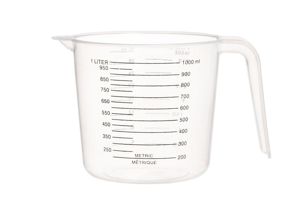 Läpinäkyvä, muovinen mittakannu selkeällä mitta-asteikolla. Vetoisuus 1 L. Konepesun kestävä.