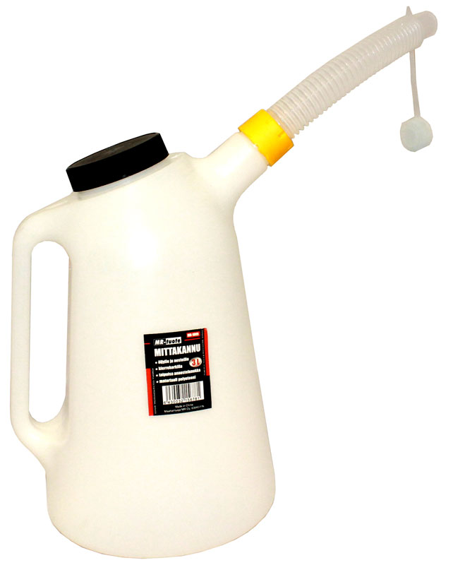 Kierrekorkilla varustettu mittakannu taipuisalla annostelunokalla. - 3 litraa - Öljylle ja nesteille - Kierrekorkilla - Taipuisa annostelunokka - Materiaali polyeteeni