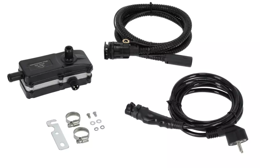 Moottorinlämmitin toimitetaan valmiina asennuspakettina, joka sisältää kaikki tarvittavat osat, kuten verkkovirtakaapelin, panssarikaapelin ja asennusjalan. Tämä tekee lämmittimen asentamisesta nopeaa ja vaivatonta. Panssarikaapelin pistorasia voidaan asentaa esimerkiksi auton puskuriin helpottamaan liittämistä.