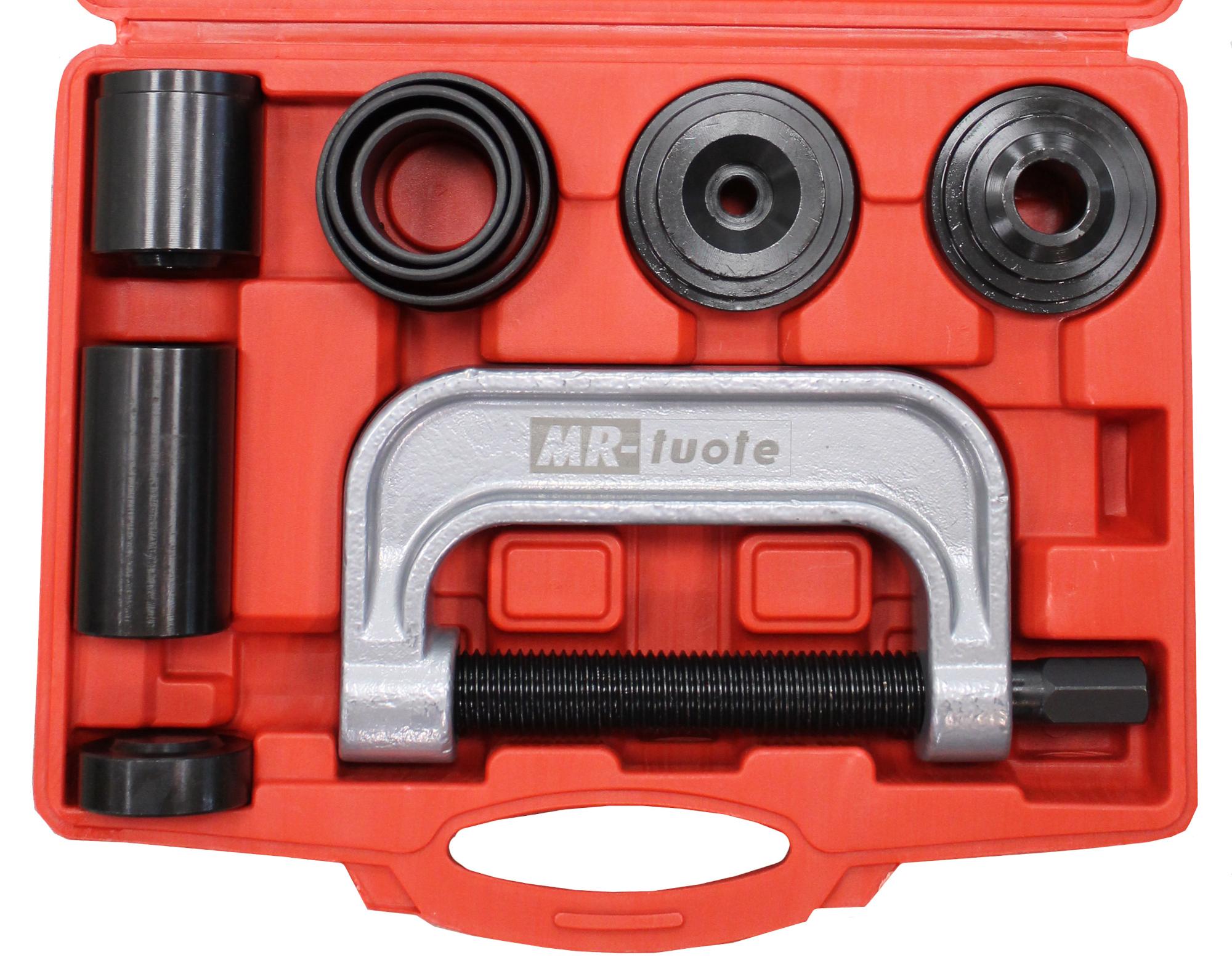 Sarja sisältää tukevan ulosvedinrungon eli C-puristimen, sekä laajan valikoiman erilaisia soviteholkkeja eri pallonivelille. Tämä varmistaa, että työkalu sopii monen kokoisille ja tyyppisille nivelille, mikä tekee työkalusarjasta erittäin monikäyttöisen.