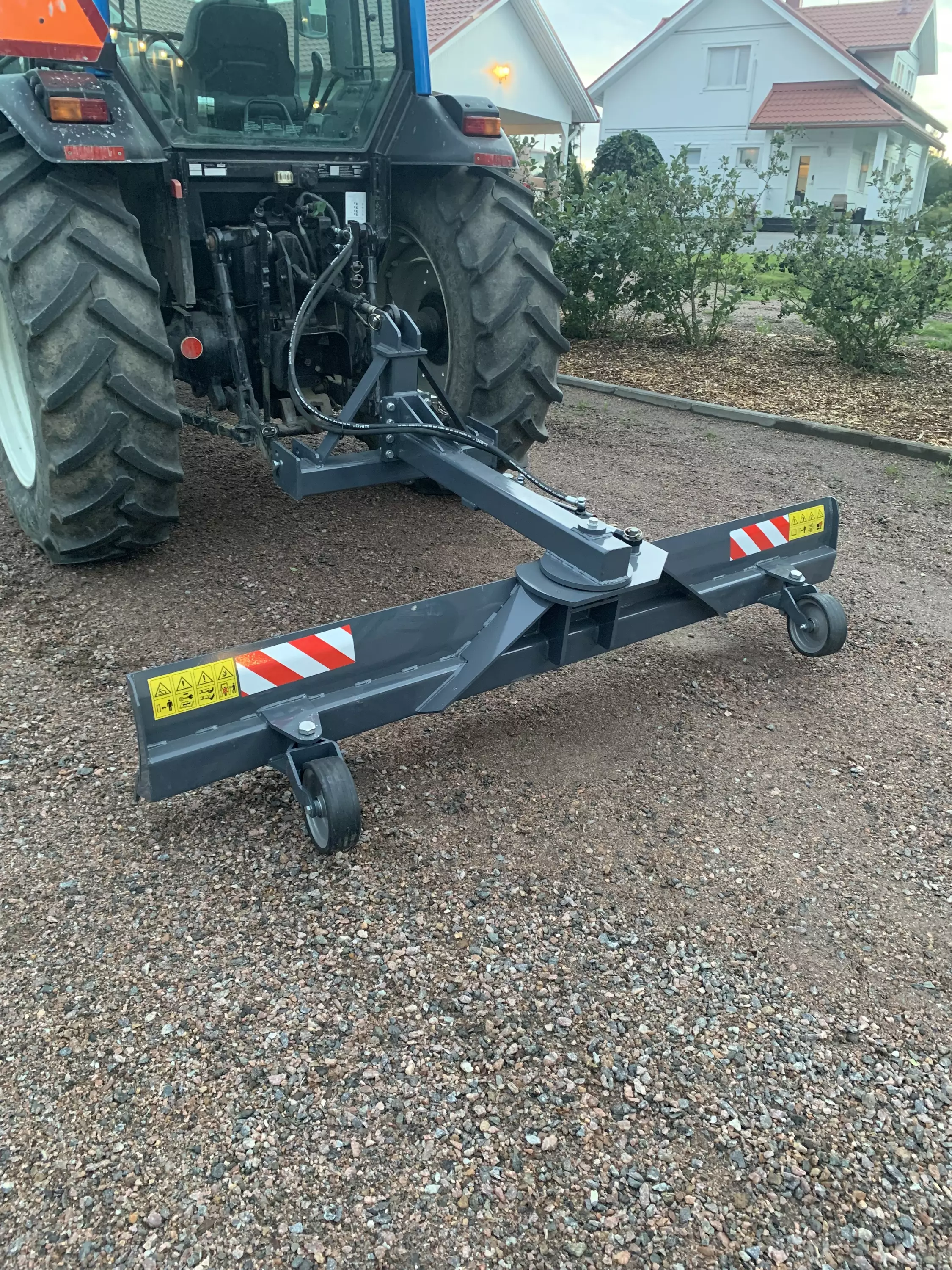 Traktorin perälevy, hydraulisylinterillä varustettu molempiin suuntiin kääntyvä takalana. Levy varustettu pyörillä.