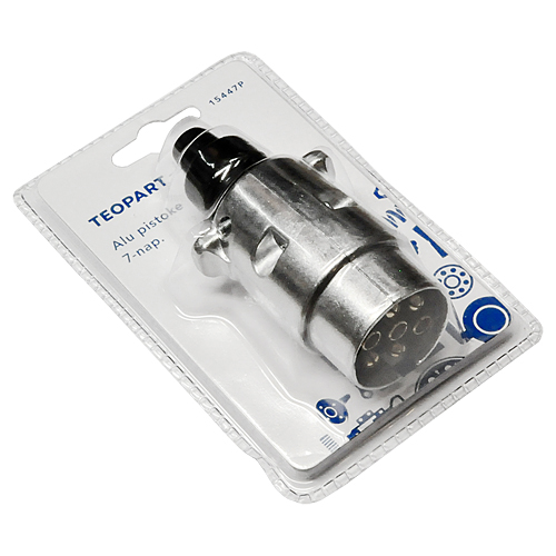 Perävaunun alumiininen pistoke, 7-napainen, 12V. Ruuvikiinnitteinen kuori ja ruuvikiinnitteiset johtoterminaalit.