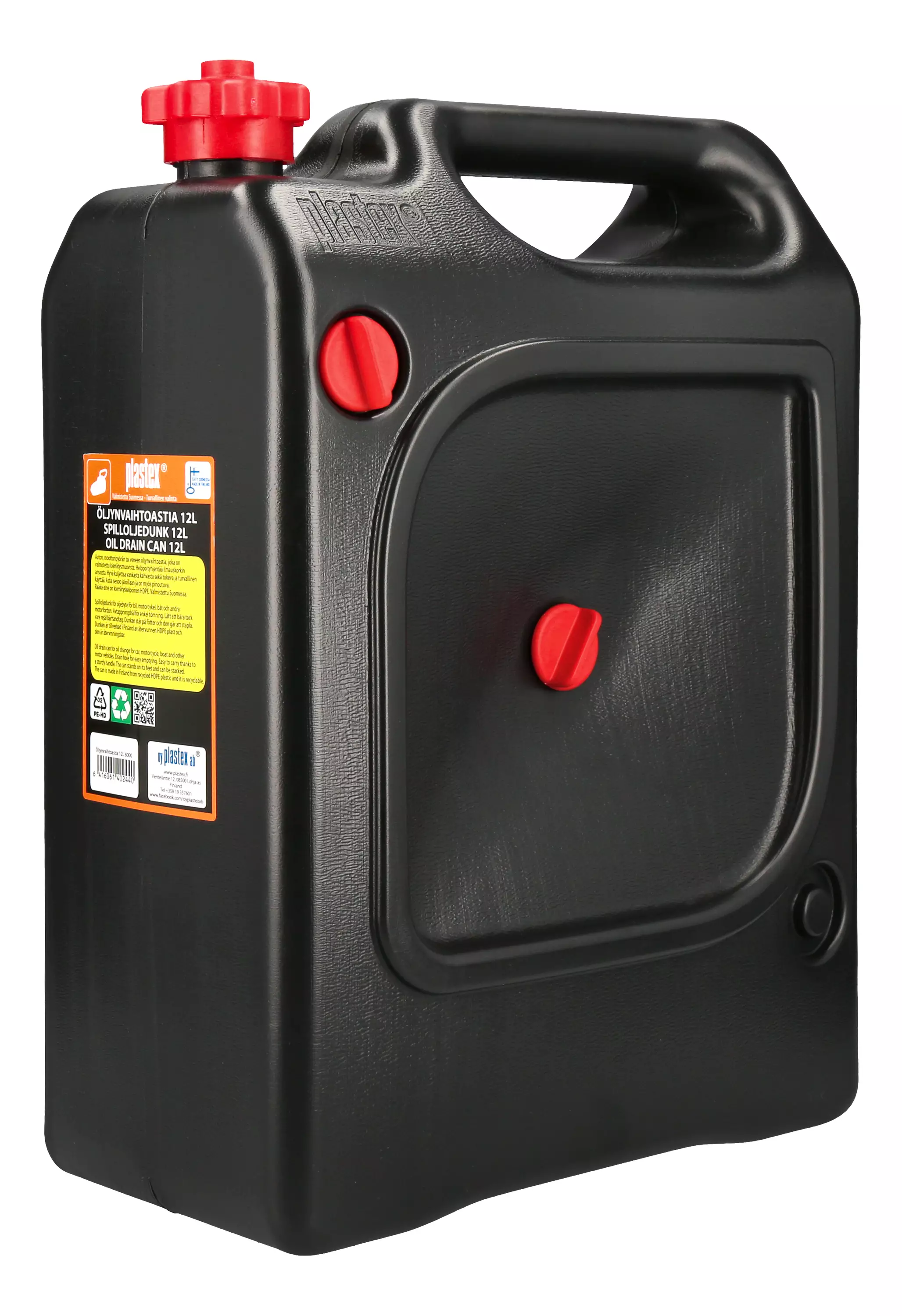 Auton, moottoripyörän tai veneen öljynvaihtoastia, joka on valmistettu HDPE kierrätysmuovista ja joka voidaan kierrättää. Helppo tyhjentää ilmauskorkin ansiosta. Hyvä kuljettaa vankasta kahvasta sekä tukeva ja turvallinen käyttää. Astia seisoo jaloillaan ja on myös pinoutuva. Valmistettu Suomessa.