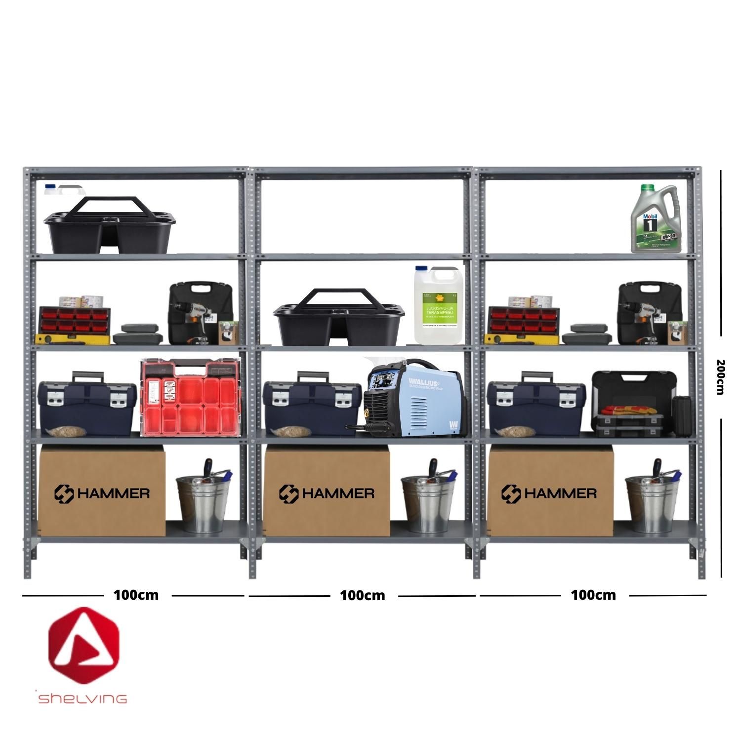 Shelving metallihyllysarjan jokaisen hyllyn kantavuus on jopa 100 kg hyllyn mitoista riippuen. Hyllykkö on helppo kasata pulteilla. Säädettävät metallihyllyt 2 cm:n välein. Mukautettavat monipuoliset modulaariset metallihyllyt mihin tahansa tilaan. Täydellinen modulaarinen metallihyllyjärjestelmä auttaa pitämään tavarasi järjestyksessä autotallissasi, varastohuoneessa, kaupassa, toimistossa, arkistossa ja muissa varastotiloissa. Valitsemalla erikokoisia moduuleja saat kaiken irti ja luot oman räätälöidyn säilytystilaratkaisun. Hyllystön kasaamiseen tarvitset vain 2kpl 13mm kiintoavaimia tai jakoavaimen.