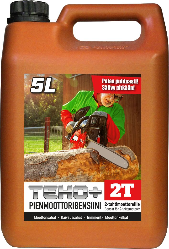 Teho+ 2T Pienmoottoribensiini on tarkoitettu käytettäväksi 2-tahtimoottorilla varustetuissa työkoneissa ja kulkuvälineissä (moottorisahat, moottorikelkat jne.) Erittäin matala-aromaattista alkylaattibensiiniä ja on lähes hajuton. Sisältää 2% synteettistä 2-tahtimootoriöljyä, sopii myös talvikäyttöön. Teho+ 2T Pienmoottoribensiini palaa lähes täydellisesti, jolloin palotilaan syntyy vähemmän karstaa ja pakokaasut ovat puhtaampia. Näin myös moottori pysyy puhtaampana. Teho+ 2T Pienmoottoribensiini säilyttää ominaisuutensa pidempään ja soveltuu sellaisenaan hyvin säilytysbensiiniksi.