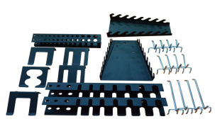 Materiaali: pulverimaalattu teräs, väri musta - 12kpl koukkua - 2kpl avaimien telineitä - 1kpl ruuvimeisseli teline - 6kpl työkalujen telineitä - Paino 1,5kg