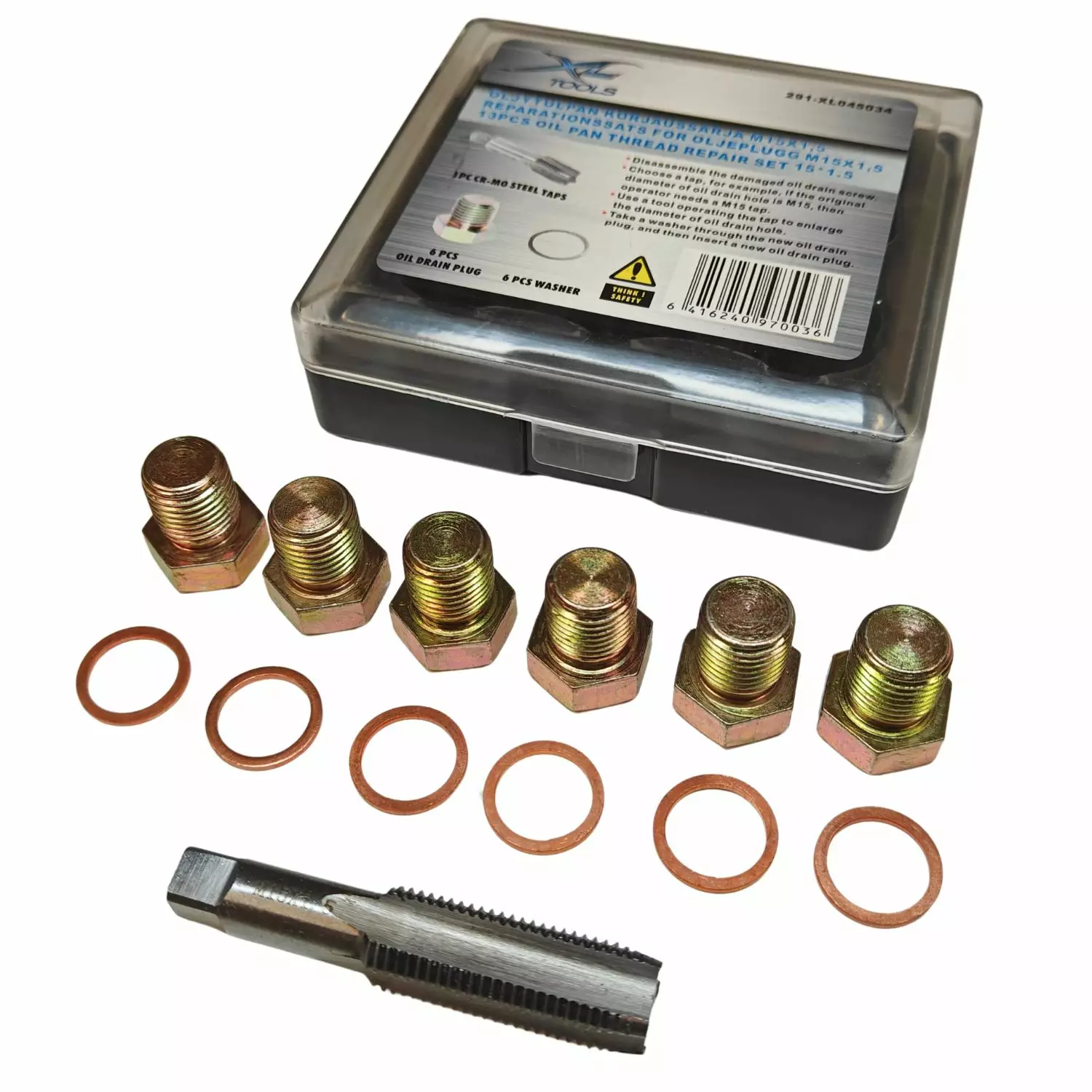 Mahdollistaa vahingoittuneen tulpan kierteiden palauttamisen helposti ja nopeasti. Sisältö: - M15 x 1.5 kierretappi - 6kpl öljyproppua - 6kpl kuparialuslevyjä. Toimitetaan muovilaatikossa.... Lue lisää