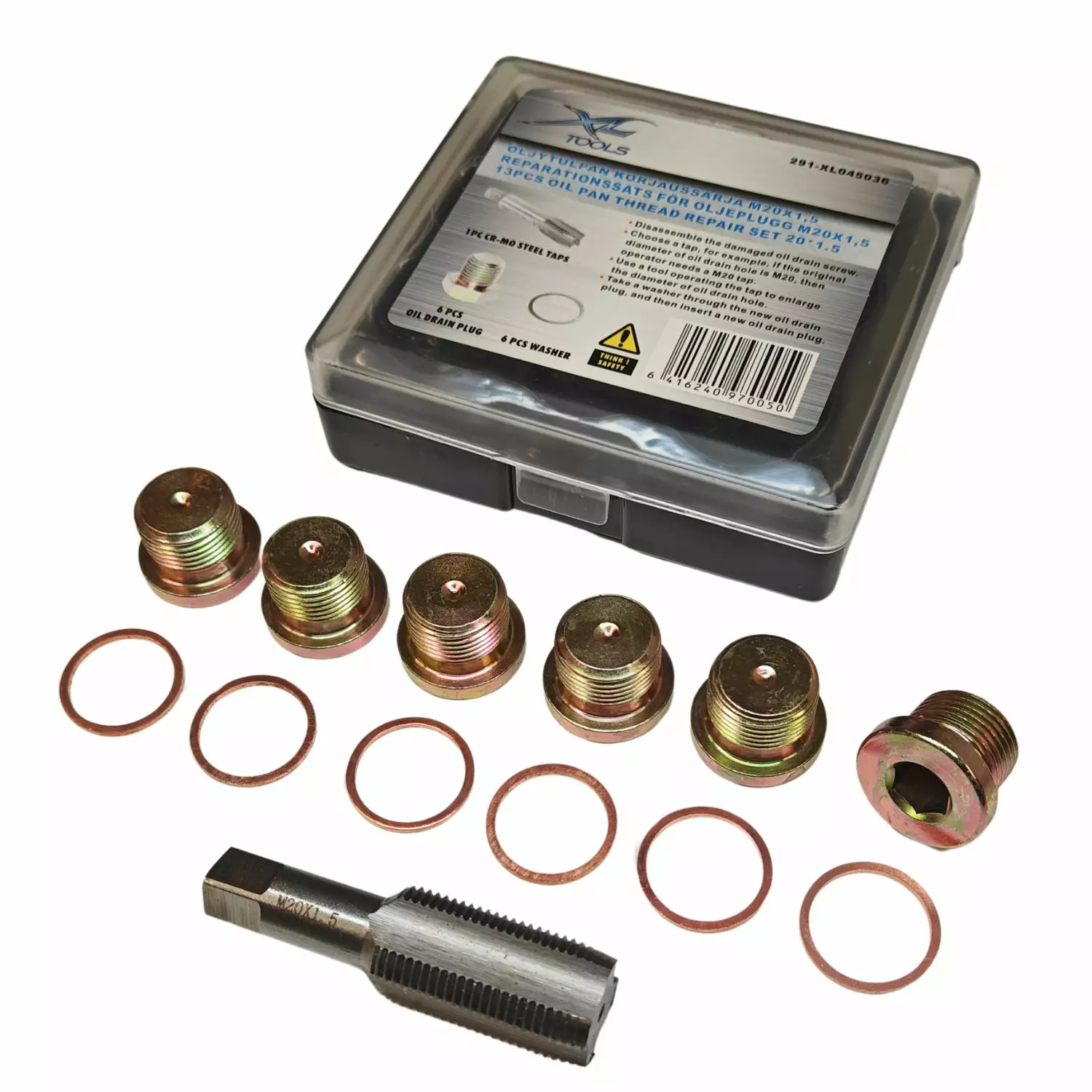Mahdollistaa vahingoittuneen tulpan kierteiden palauttamisen helposti ja nopeasti. Sisältö: - M20 x 1.5 kierretappi - 6kpl öljyproppua - 6kpl kuparialuslevyjä. Toimitetaan muovilaatikossa.... Lue lisää