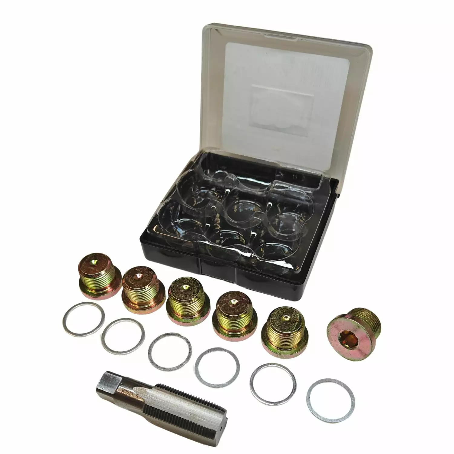 Mahdollistaa vahingoittuneen tulpan kierteiden palauttamisen helposti ja nopeasti. Sisältö: - M22 x 1.5 kierretappi - 6kpl öljyproppua - 6kpl kuparialuslevyjä. Toimitetaan muovilaatikossa.... Lue lisää