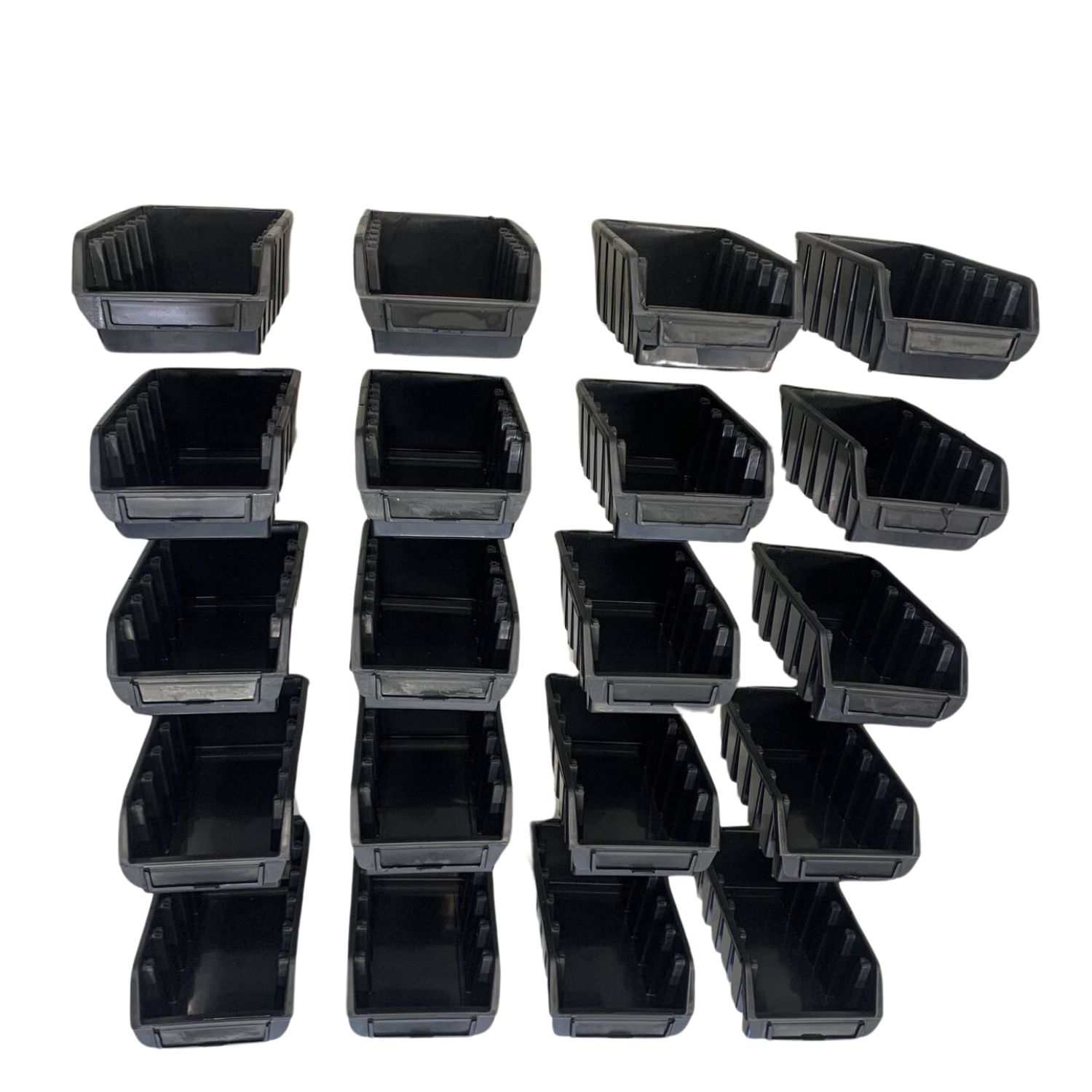 Vankkarakenteinen avolokerikko tavaroiden säilytykseen. Lokerikot voidaan pinota päällekkäin. Etureunassa paikka etiketille.