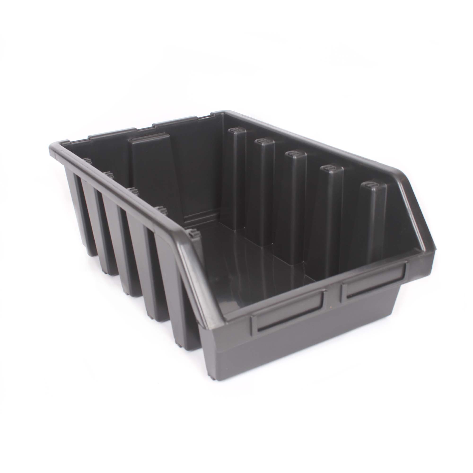 Vankkarakenteinen avolokerikko tavaroiden säilytykseen. Lokerikot voidaan pinota päällekkäin. Etureunassa paikka etiketille.