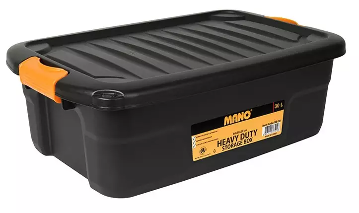 Manon erittäin tukeva ja kestävä kannellinen varastolaatikko. Mustan säilytyslaatikon päädyissä on keltaiset kannen kiinnikkeet, joilla lukitset kannen kiinni laatikkoon. Laatikon kahdessa... Lue lisää
