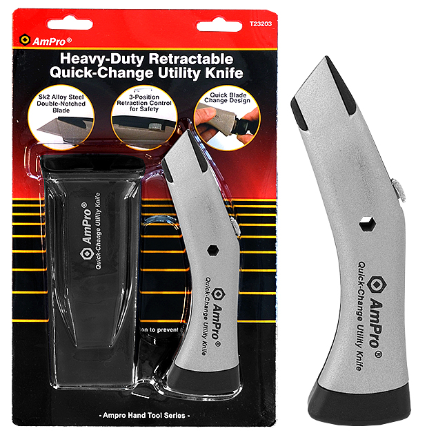 -kahva painevalettua alumiinia -pikalukitus-ominaisuus mahdollistaa helpon ja nopean terän vaihdon -kahvassa säilytystila 12 varaterälle -3-asentoinen sisäänvedettävä terä takaa turvallisen... Lue lisää