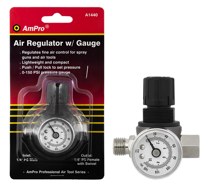 -mitta-asteikko 0-11 Bar -tarkka ilmapaineensäätö maaliruiskuille ja ilmatyökaluille -säätää ilmanpaineen pysymään koko ajan vakiona -helppokäyttöinen paineenlukituspainike -1/4"... Lue lisää