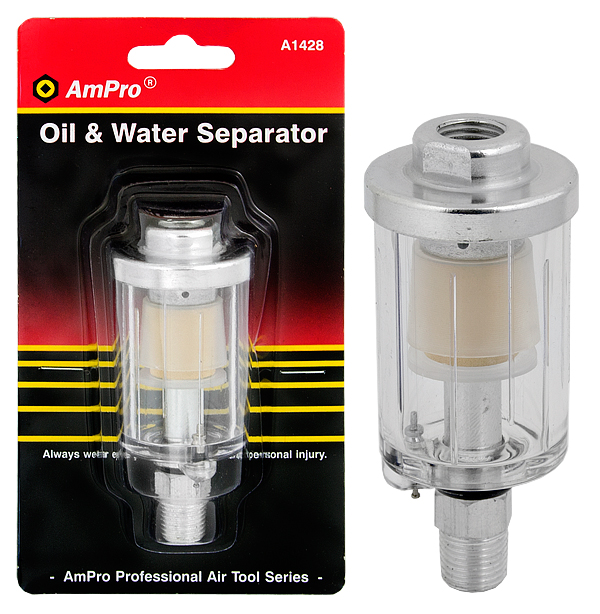 -suodatin poistaa veden ja öljyn ilman seasta -max. työskentelypaine 10 Bar -ilmaliitin (NPT) 1/4" -takuu 1 vuosi -IP-ripustinpakkaus