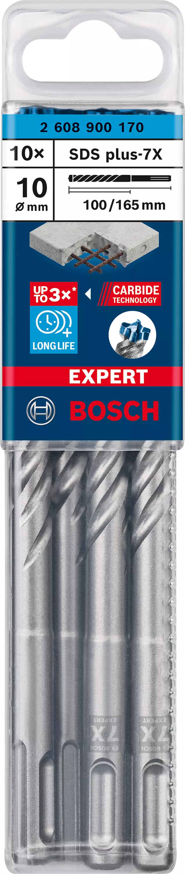 Bosch Expert SDS plus-7X -terän täyskarbidipään edistyksellinen 4-leikkuinen rakenne on valmistettu erittäin kovasta yhtenäisestä metallikappaleesta, jonka ansiosta se ei jumiudu, eikä terän rakenne heikkene iskuporakäytössä. Bosch Carbide -teknologian ja täyskarbidipään ansiosta Expert SDS plus-7X kestää tavallisia poravasaranteriä pidempään. Se katkaisee raudoitteet tehokkaasti ja vaivattomasti, eikä työtä tarvitse keskeyttää poran uudelleenkeskittämistä tai terän vaihtoa varten sen osuessa teräkseen. Bosch Expert SDS plus-7X -poravasaranterä on luotettava, tehokas ja pitkäikäinen tarvike rakennusalan ammattilaisille, jotka poraavat esimerkiksi asennustarvikkeita ja kiinnittimiä betoniin ja vahvistettuun betoniin. Se on asiantuntijan tarvikevalinta SDS plus -poravasaraan ja se sopii kaikkiin SDS plus -poravasaroihin.
