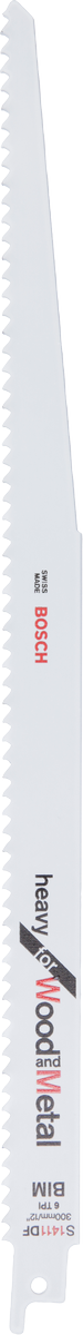 Puukkosahanterä metallille ja puulle, hammasjako 4,6 mm / 6 TPI. 2 kpl. Bosch, puukkosahanterä Tekniset tiedot: - Hammasjako 4,6 mm / 6 TPI - Pituus 305 mm
