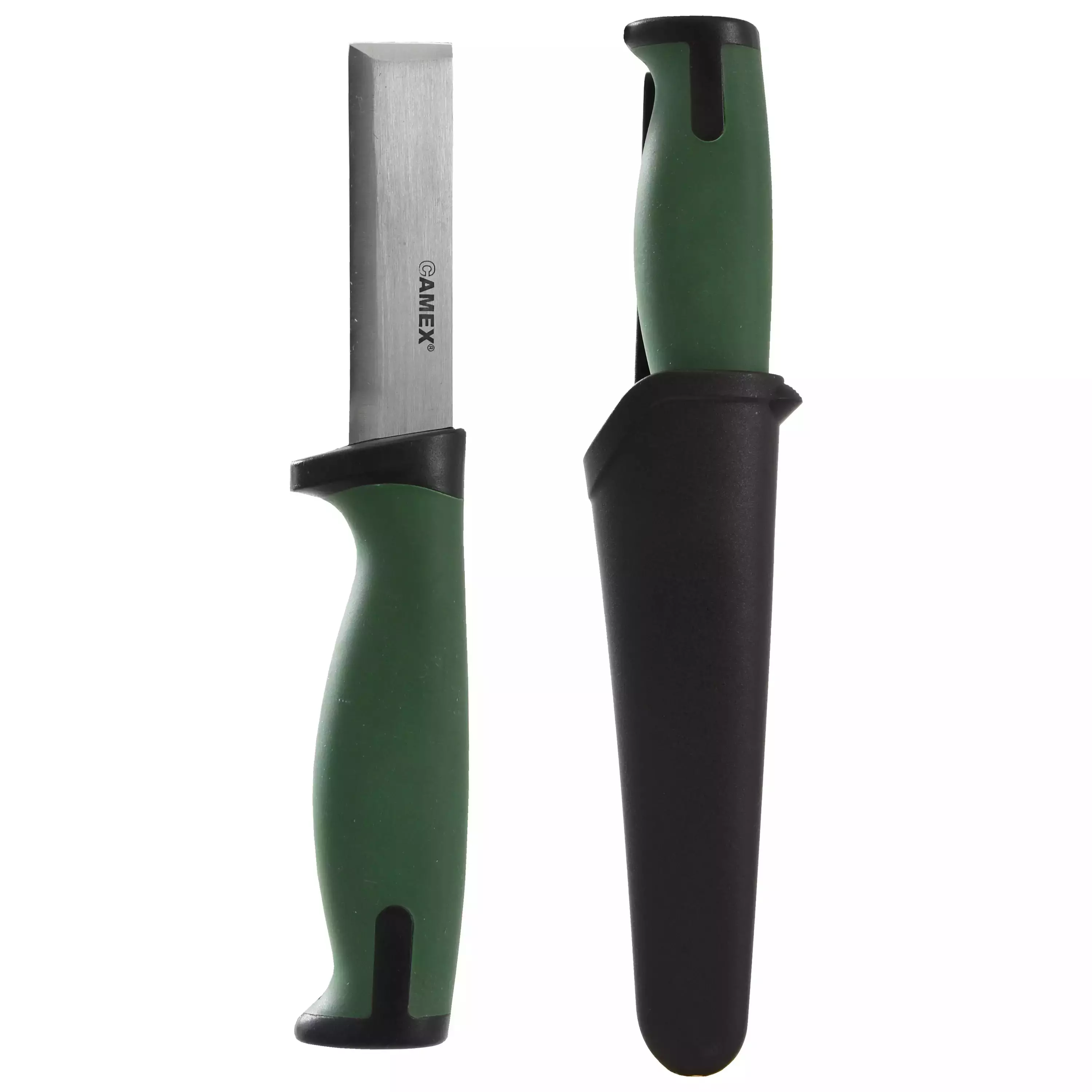 Terän materiaali: ruostumatonta terästä 5Cr15moV - Terän pituus: 8 cm - Muovikahva kumipinnoitteella - Kotelo vyökiinninityksellä sekä kiinnitysmahdollisuus nappiin - Sormisuoja talttapuukko... Lue lisää