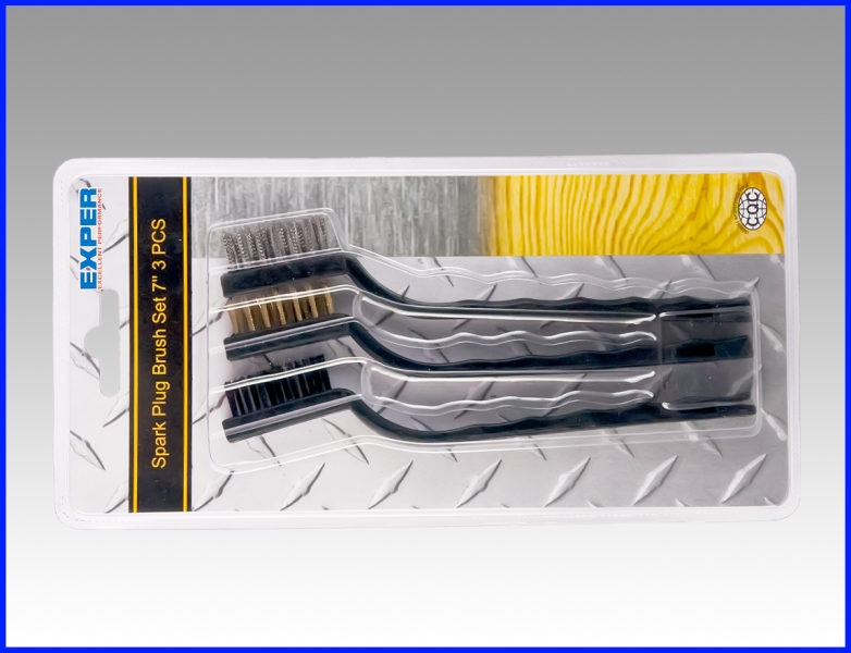 3-osainen käsiharjasarja esim. sytystystulppien puhdistukseen. 1 kpl rst-harja, 1 messinkiharja ja 1 kpl polypropyleeniharja.