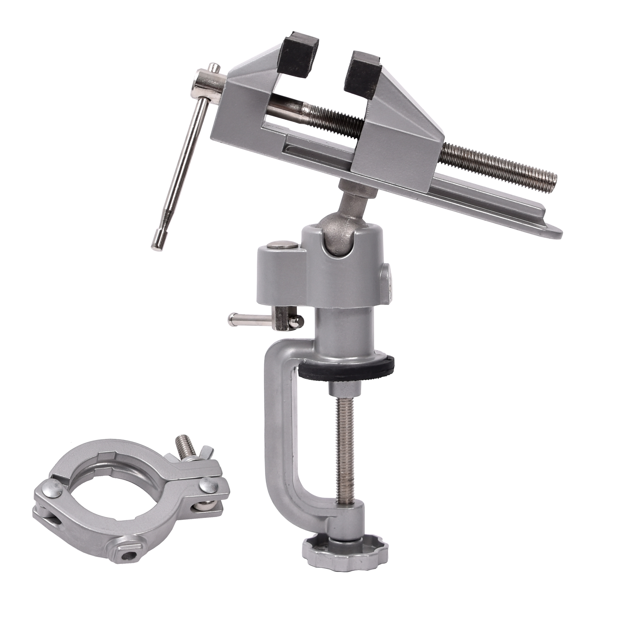 Tuote toimii niin pöytäruuvipenkkinä kuin porapuristimena. Tuotteessa on pallonivel joustavaa työskentelyä varten.