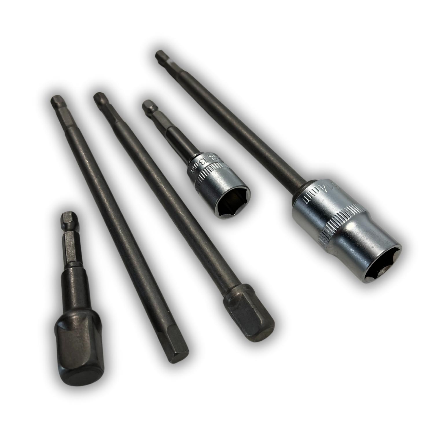 Hylsypidinsarjasarja hylsyille porakoneeseen. Sarjassa 3 kp 150mm , 2 kpl 65mm sekä 1 kpl 70mm hylsyadapteria.