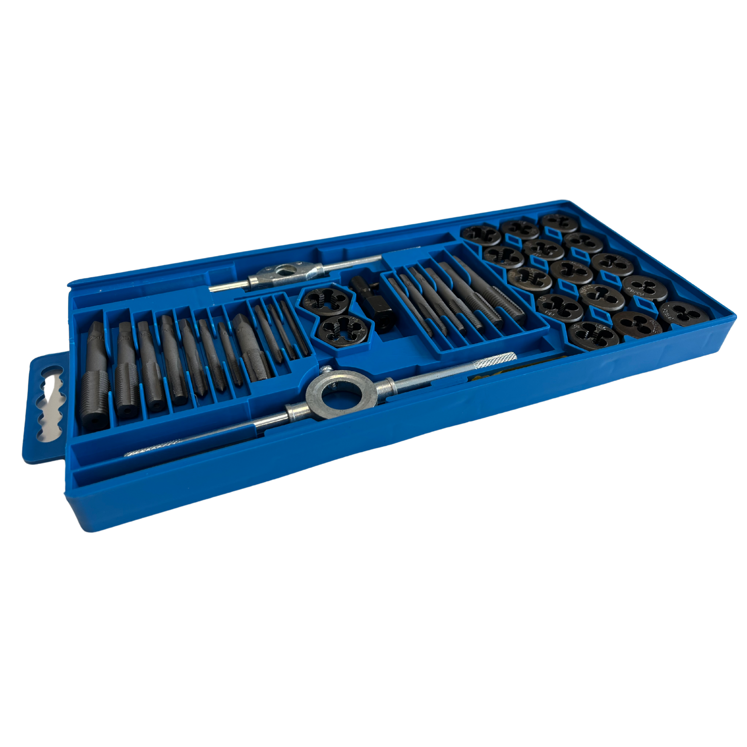 Kierrepakka/kierretappisarja. Laadukkaat carbon steel kierretyökalut. Monipuolinen kierretyökalusarja soveltuu harrastelijakäyttöön!