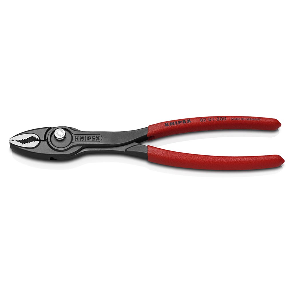 KNIPEX Siirtoleukapihti TwinGrip 200 mm. TwinGrip siirtoleukapihdeissä on ainutlaatuinen yhdistelmä: voit tarttua pihdeillä edestä ja sivulta, säätö tapahtuu painikkeella. Erittäin ohuilla pihdeillä voi työskennellä ahtaissakin asennustiloissa. Etuleuat tarttuvat tiukasti vahvojen hampaiden ja kiristysmekanismin ansiosta myös kärjestä. Pihdit tarttuvat tukevasti tasaisiin kappaleisiin kolmipistejärjestelmän avulla. Ruuveihin tarttuminen, kiristäminen ja löysääminen onnistuu kuluneesta kannasta tai kierteistä huolimatta. Laaja tartunta kapasiteetti edestä ja sivulta halkaisijaltaan ja leveydeltään 4–22 mm. Valmistettu kromivanadiumteräksestä, hampaat öljy- ja induktiokarkaistu (61 HRC). Viiteen asentoon säädettävä liukuva ruuvipihtiliitos, jota voidaan muuttaa painiketta painamalla tartuntaleveyden säätämiseksi. Puristuspysäytin vähentää sormivammojen vaaraa. Kestävä mekanismi lujatekoisen haaranivelen ansiosta. Putkien kapasiteetti (halkaisija): Ø 4?–?22mm. Mutterien kapasiteetti, avainväli: 4?–?22mm.