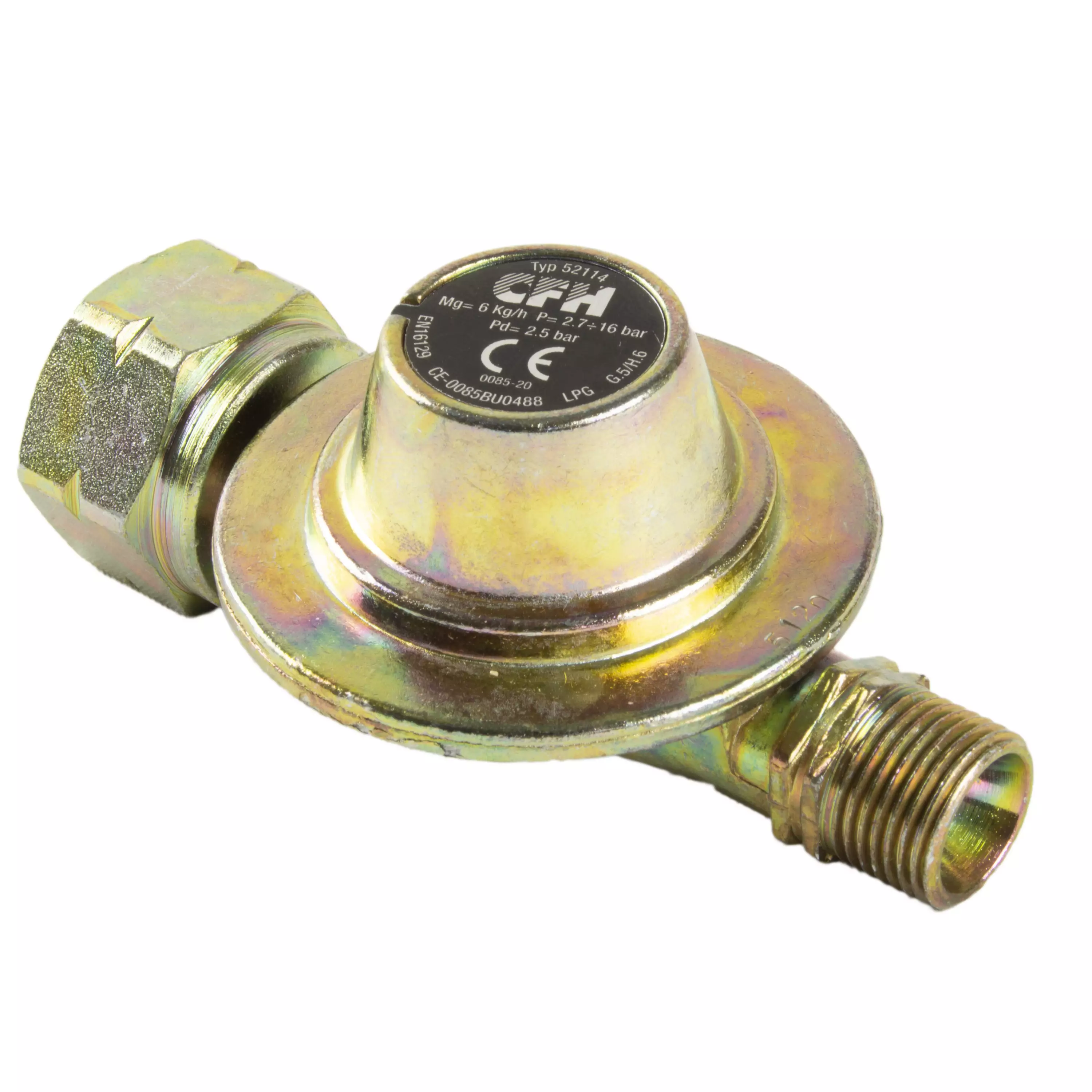 Korkeapainesäädin nestekaasutyökaluille/tohoille. Tässä korkeapainesäätimessä on sivuventtiili sekä 3/8? liitäntä, joka sopii yleisimpien nestekaasupolttimien letkuihin. Tasainen 2.5 bar paine, virtaus 6 kg/h.