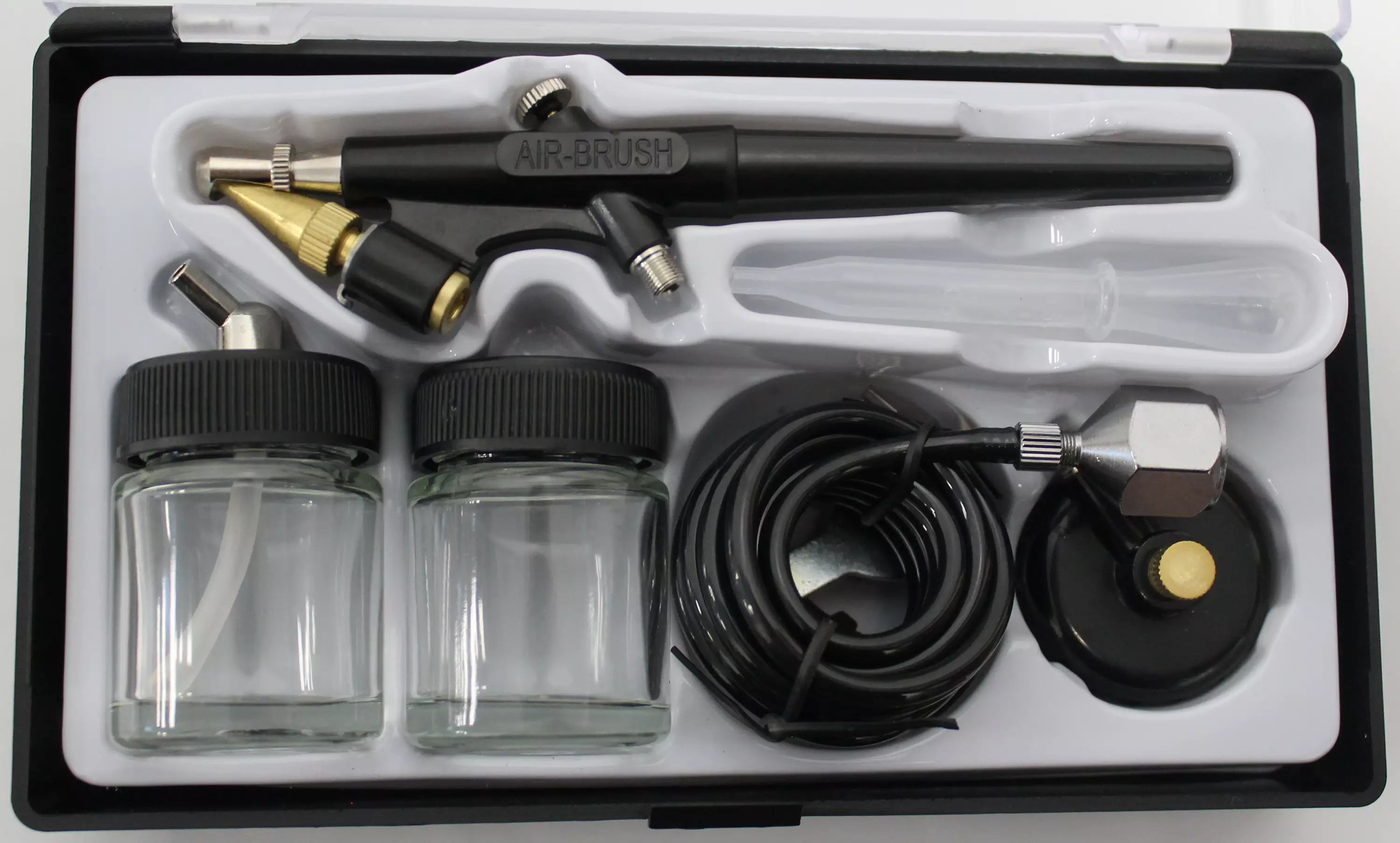 kynäruisku 150 mm - ilmaletku 1,5 m - lasisäiliöt 2 kpl - letkuliitin 1/4" - käyttöpaine 1-3 bar (15-50psi) - ilmankulutus 15 l/min - nestevirtaus 15-30 ml/min - suutin Ø 0,8 mm - mm.... Lue lisää