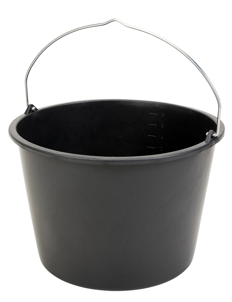 Laadukas rakennusämpäri 20 litraa, joka on varustettu kätevällä mitta-asteikolla ja kestävällä metallisella kantokahvalla.