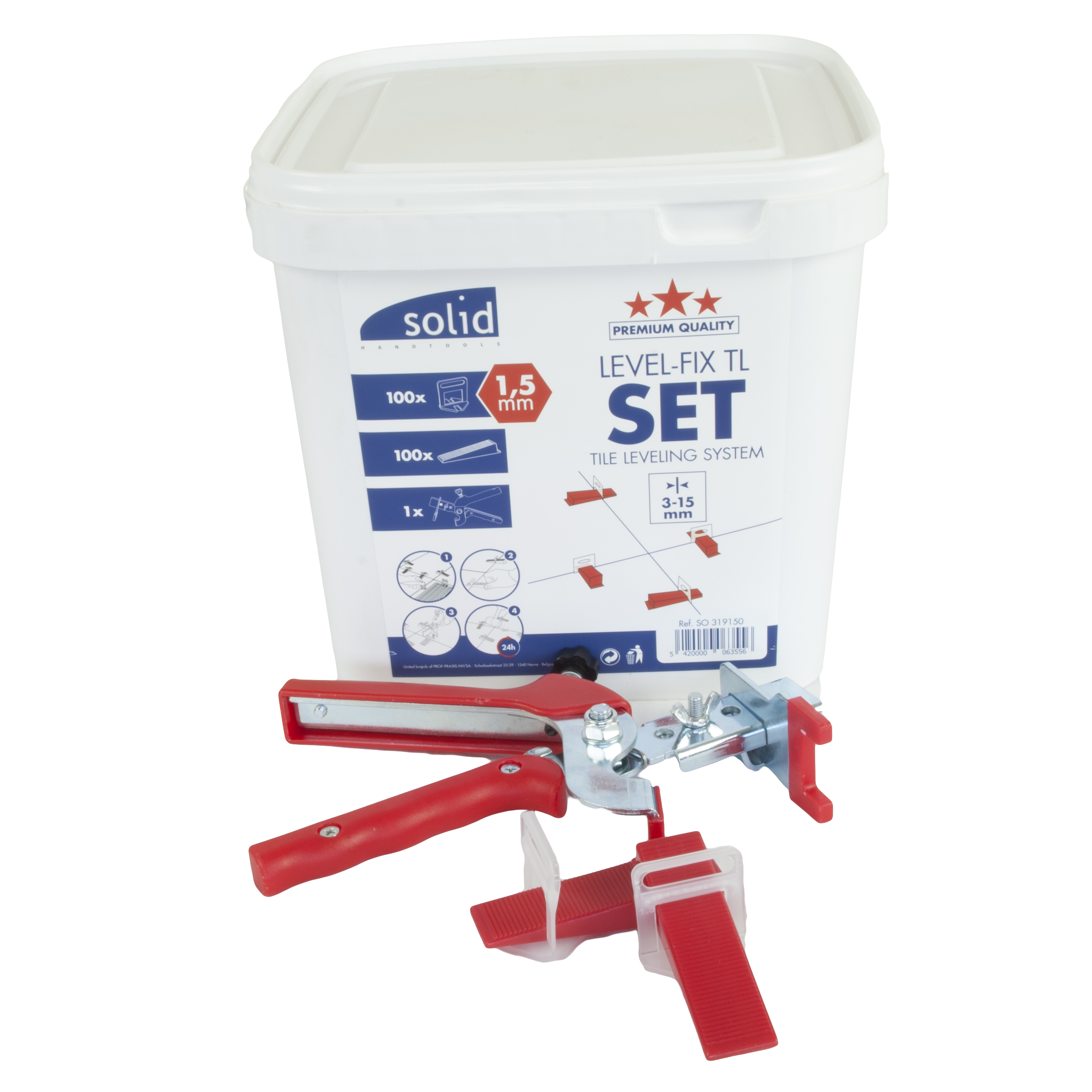 Täydellinen laattojen tasausjärjestelmä, joka sisältää kaiken mitä tarvitset lattia- tai seinälaattojen tasaamiseen. Järjestelmän avulla tasaat laatat samalle tasolle, jolloin niiden välillä ei synny yhtään korkeuseroja. Täydellinen apuväline sekä tee-se-itse taitureille sekä ammattimiehille, jotka haluavat saada aikaan täydellistä jälkeä nopeasti.
