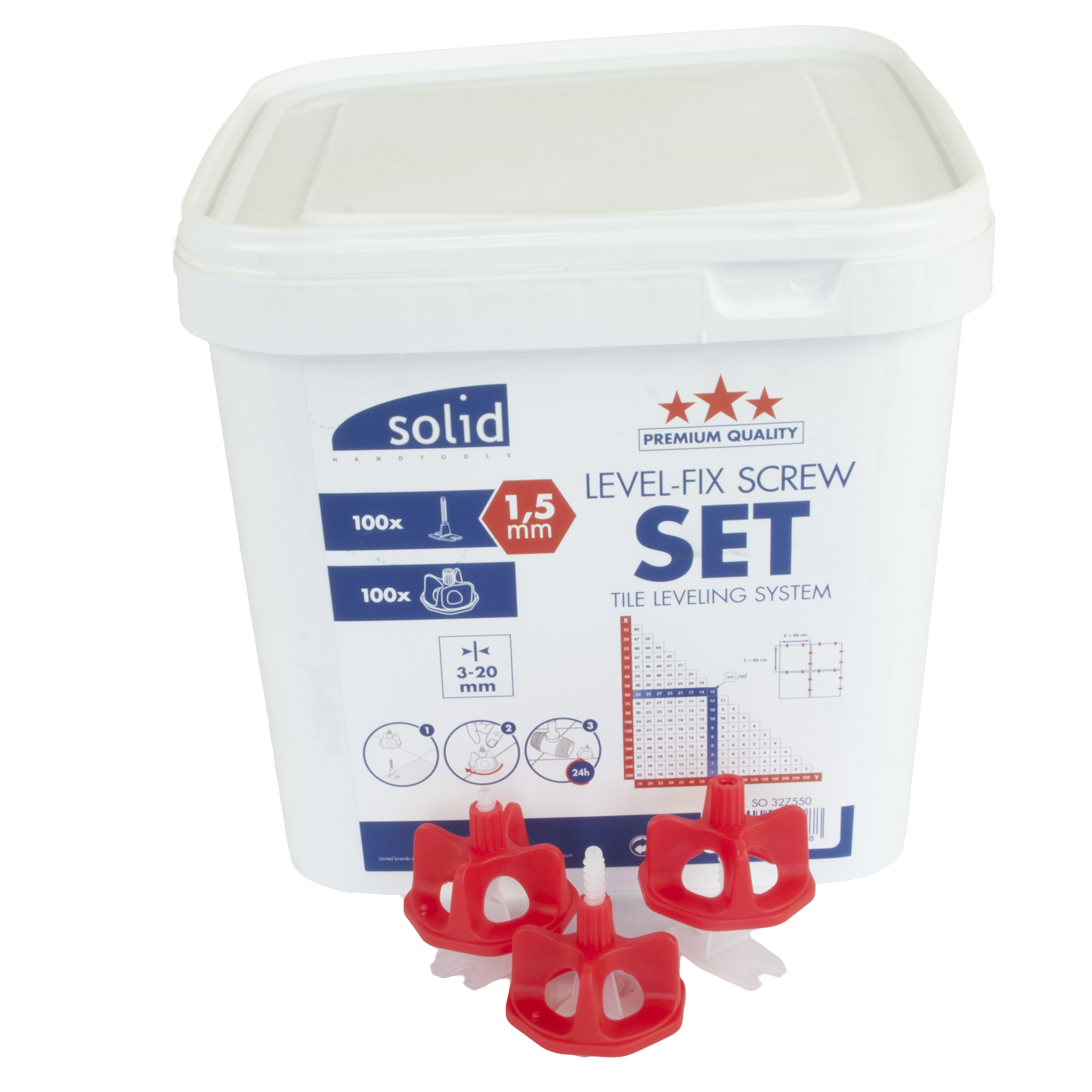 Täydellinen laattojen tasausjärjestelmä, joka sisältää kaiken mitä tarvitset lattialaattojen tasaamiseen. Tasausjärjestelmällä tasataan lattialaattoja samalle tasolle, jolloin laattojen välille ei synny korkeuseroja. Järjestelmän avulla tasaat laatat samalle tasolle, jolloin niiden välillä ei synny yhtään korkeuseroja. Täydellinen apuväline sekä tee-se-itse taitureille sekä ammattimiehille, jotka haluavat saada aikaan täydellistä jälkeä nopeasti. Järjestelmä sisältää ainutlaatuisen pyöritettävän kiristimen, jonka ansiosta kiristämiseen ei tarvitse erillisiä pihtejä!