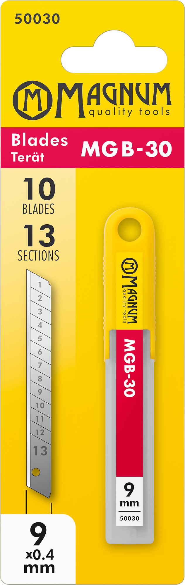9 mm leveä terä 13 katkaisupalalla. Pakattu 10 kappaleen käytännölliseen muovikoteloon. Huippukehittynyt valmistustekniikka takaa terille tasaisen erinomaisen terävyyden.... Lue lisää