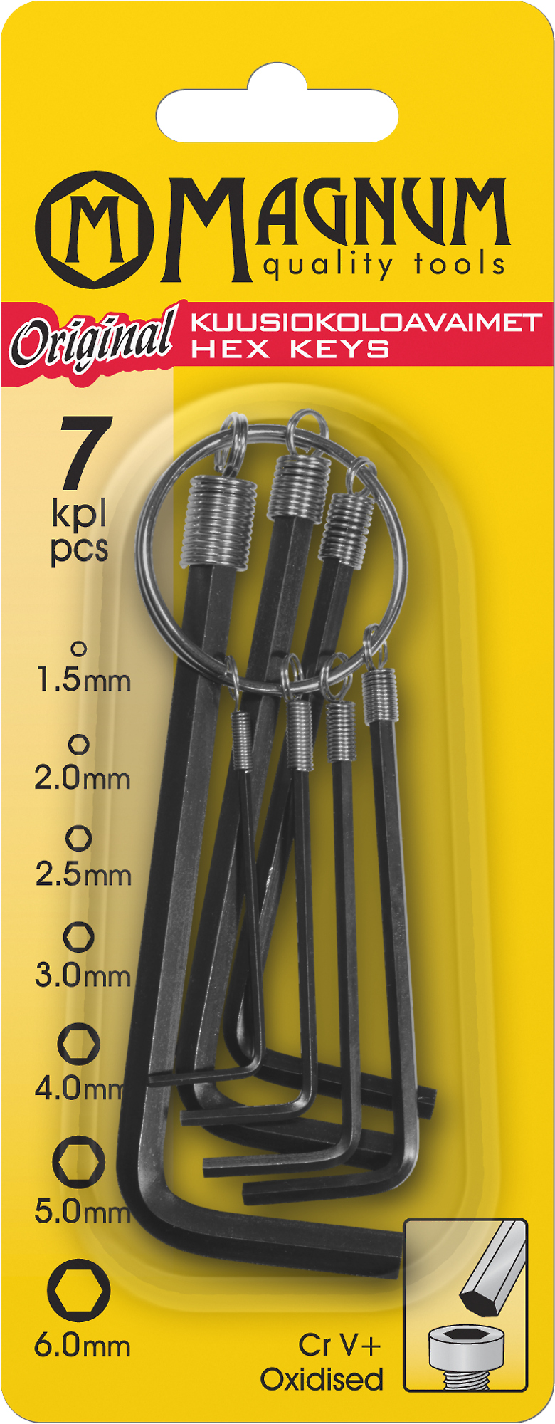 Valmistettu kestävästä kromivanadiiniteräksestä mustalla fosfatoidulla pintakäsittelyllä.