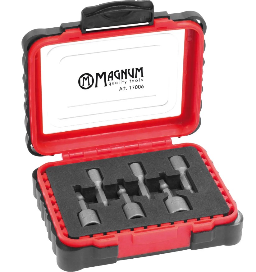 Sisältää: 7, 8, 10 ja 13mm sekä 1/4" ja 3/8" hylsyt